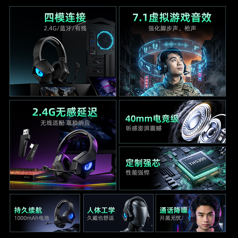钛度L1三角洲游戏耳机头戴式 电竞专用四模无线听声辨位FPS电脑麦