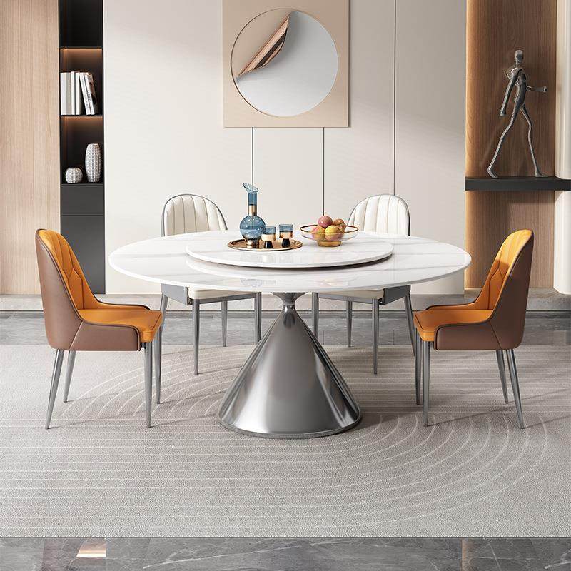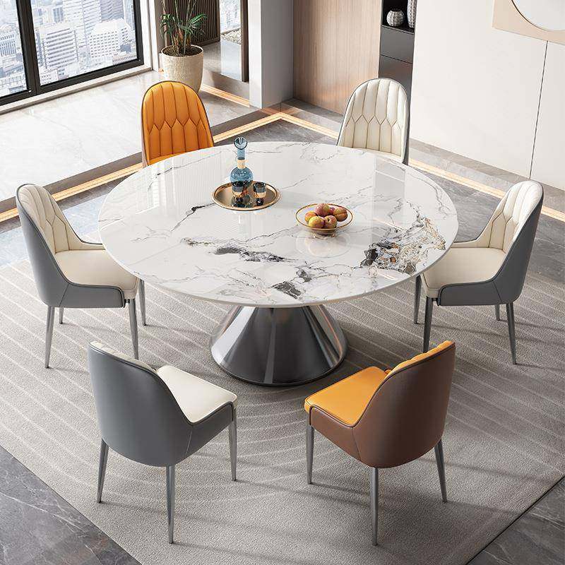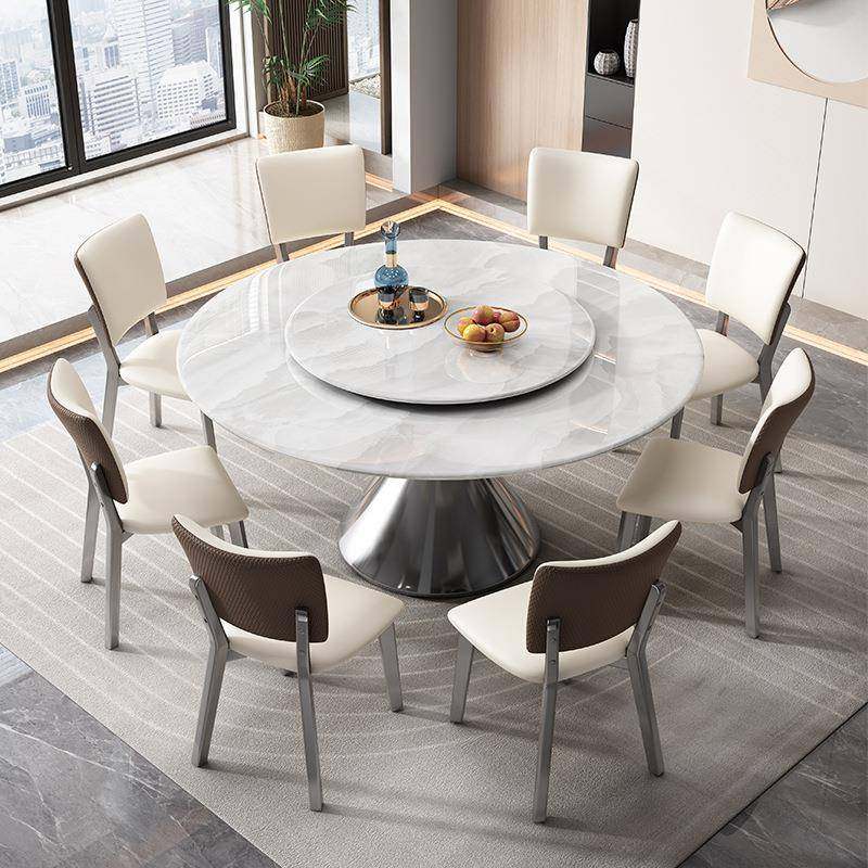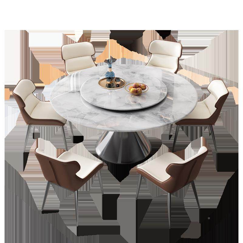 晶ILG石餐桌椅盘组合家用高微级感超晶石圆桌现代简约带转岩板餐