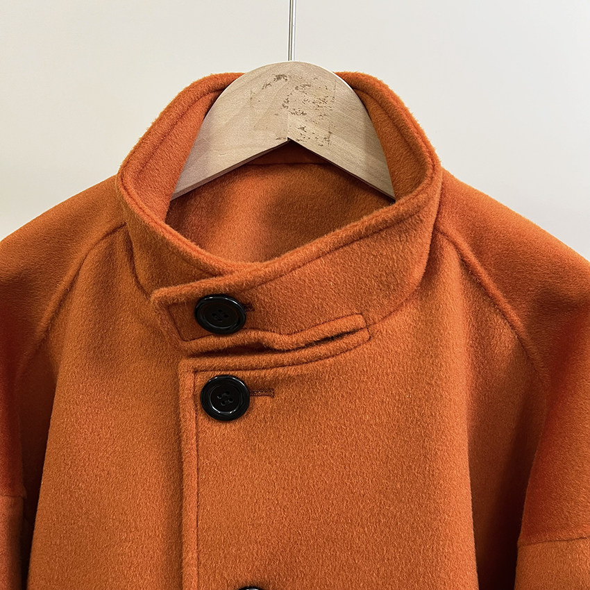 毛呢外套 popchrio立翻领骆驼绒双面呢羊毛大衣中长款 明星同款