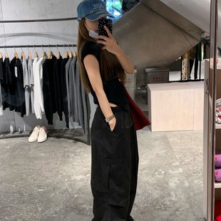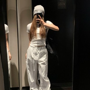 显瘦垂感拖地卫裤 修身 女春季 橘子树在哪儿腰头撞色休闲弹力喇叭裤