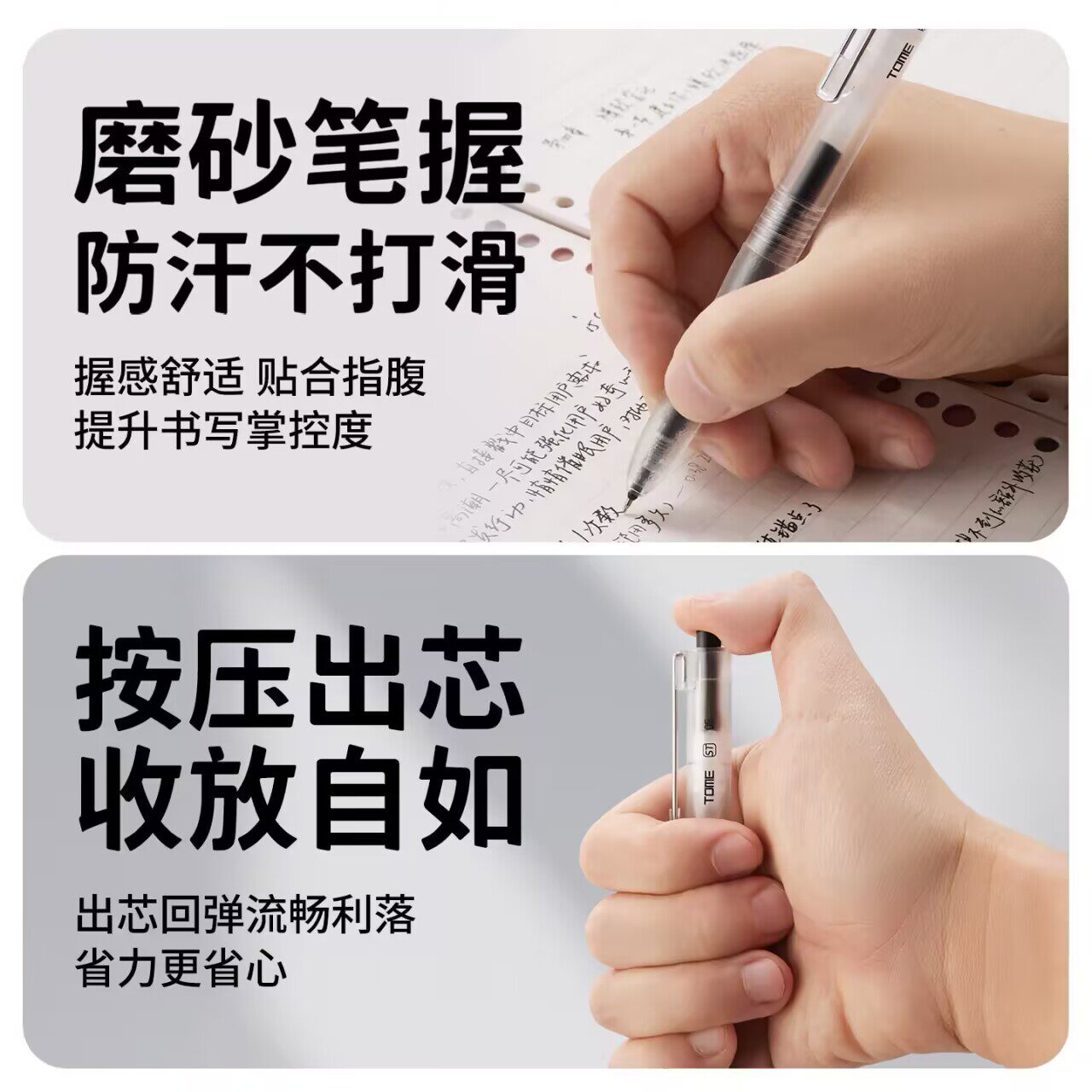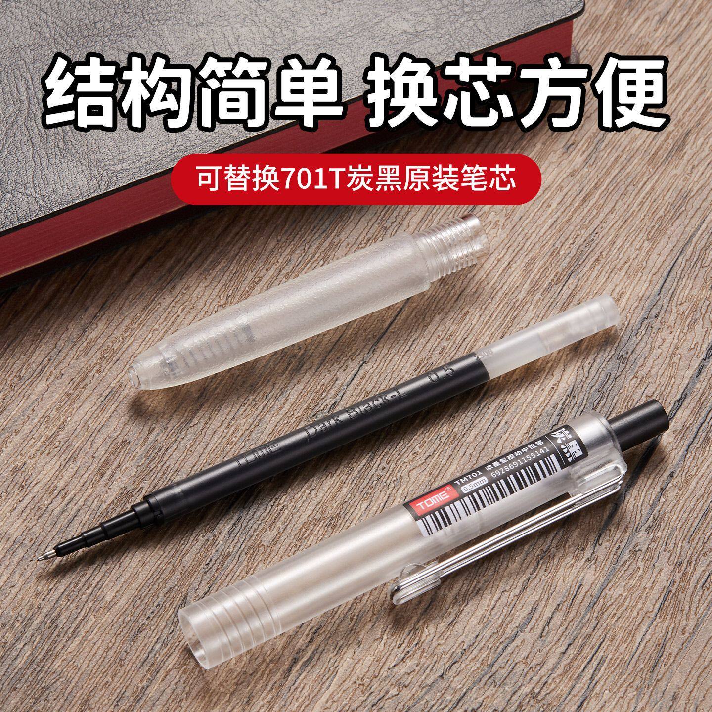 TOME图米黑科技浓墨中性笔701学生考试笔速干简约黑色0.5顺滑st尖按动式 水笔刷题专用签字办公碳黑笔