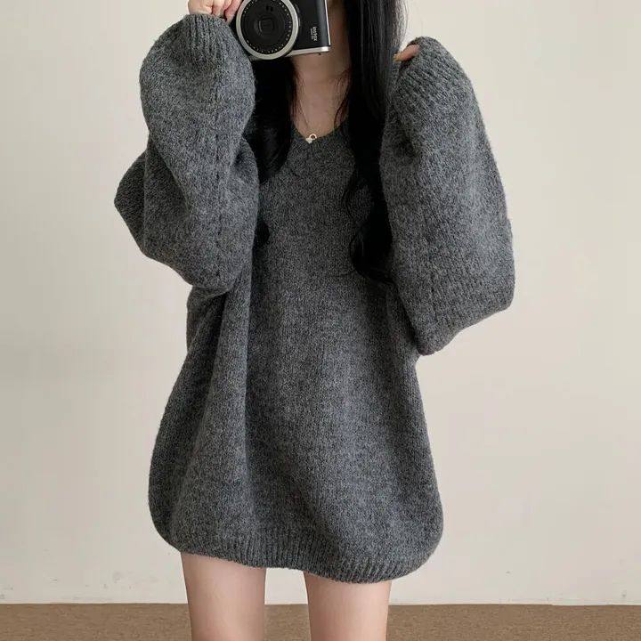 高级感上衣宽松打底针织衫 圆领100%纯山羊绒衫 女高端毛衣秋冬新款