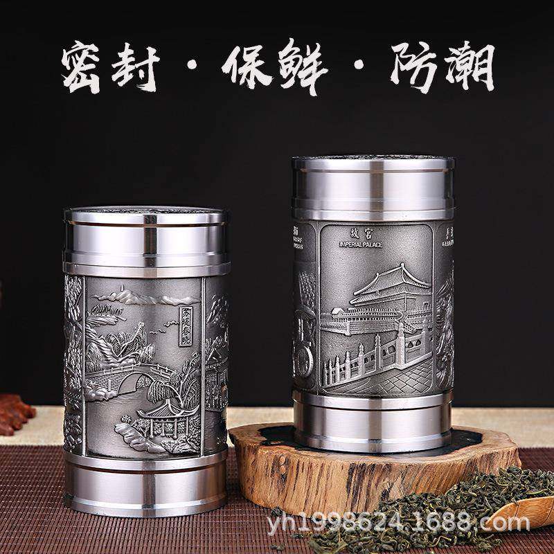 GEJU厂家可金直销锡茶叶罐储茶罐属罐茶叶盒商务礼品中号直口LOO