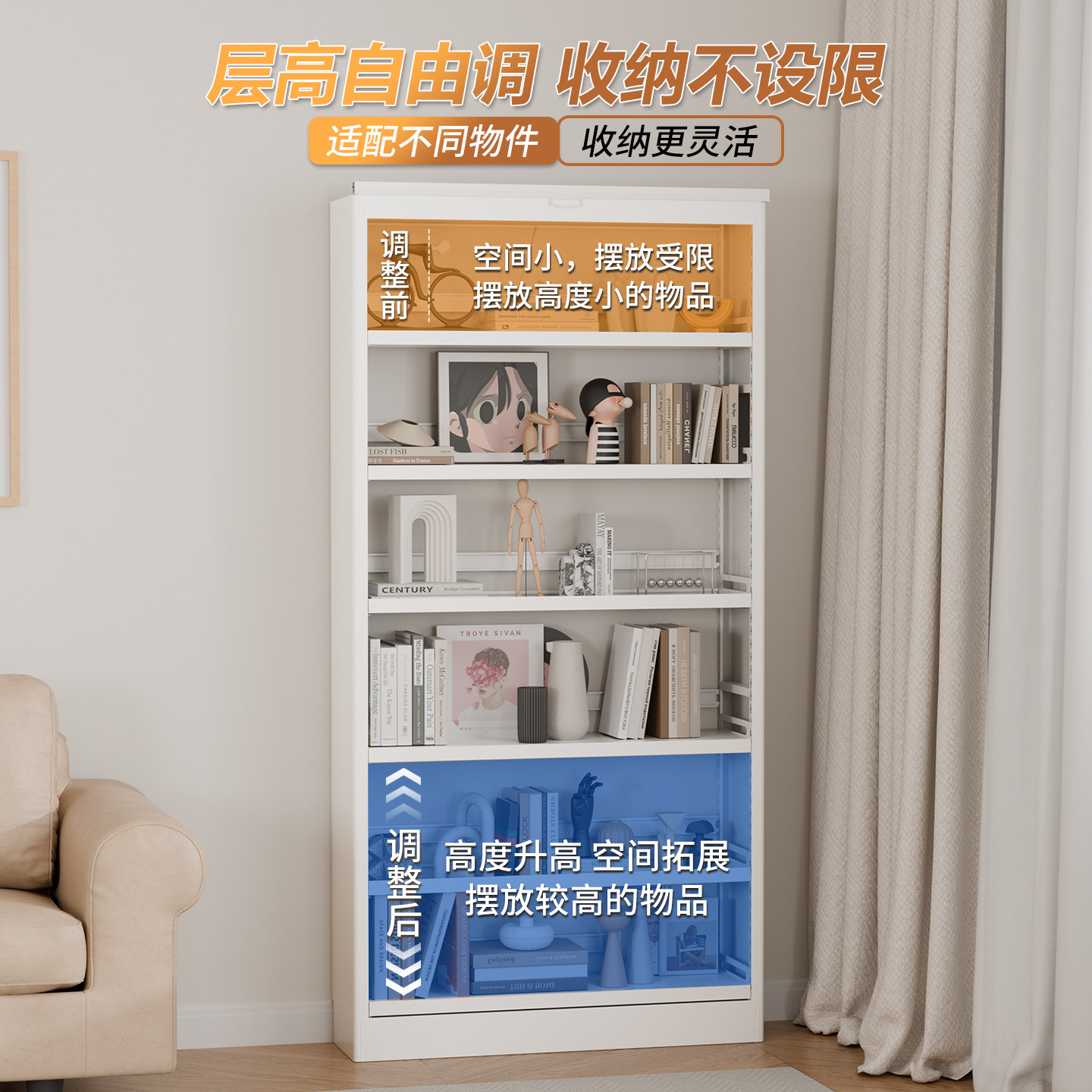 品正无忧金属防尘帘20 25cm书架落地家用一体靠墙收纳储物置物架