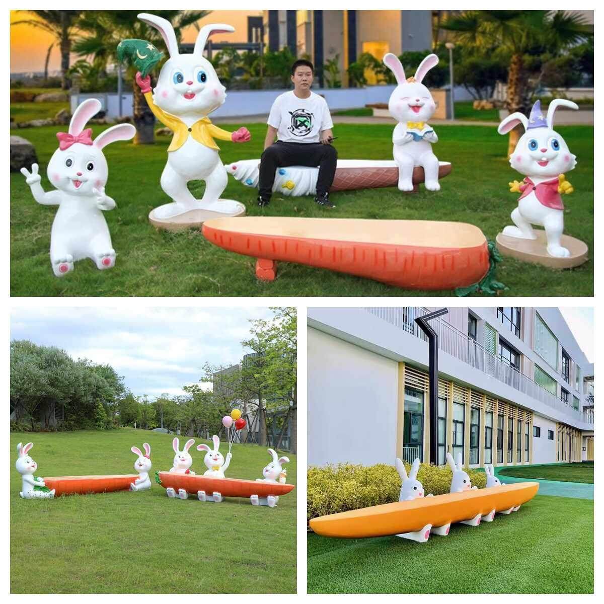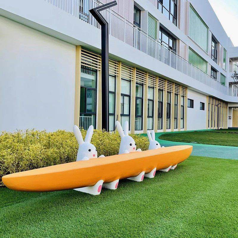 户外卡通兔子座椅幼儿园商场美陈装 饰摆件玻璃钢雕塑公园景观小品