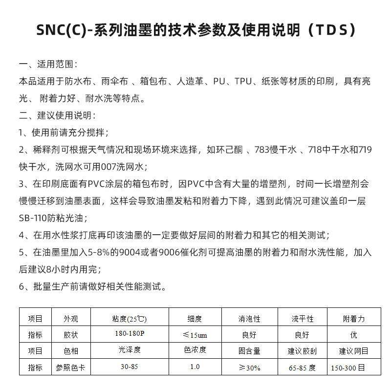 系列高级防水尼龙亮光油墨1公斤装 SNC