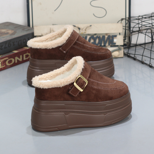 冬季 毛毛拖鞋 女厚底外穿羊皮毛一体包头雪地靴半拖一脚蹬懒人棉鞋
