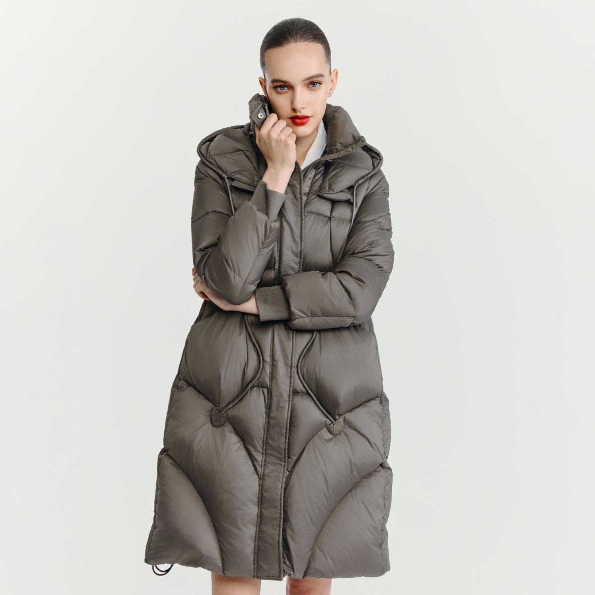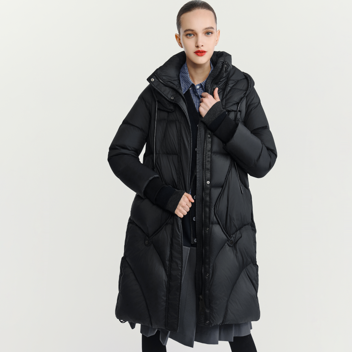 90白鸭绒巫师帽羽绒服 女装 胖mm冬季 高充绒量长羽绒服木子理想大码