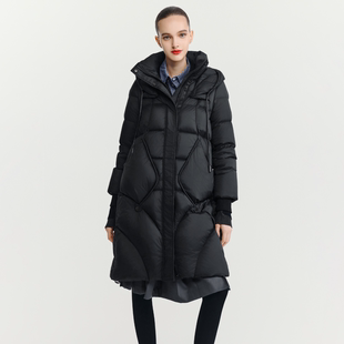 BXV黑色羊毛大翻领羽绒服女中长款 简约肌理感羽绒外套潮 2025冬季