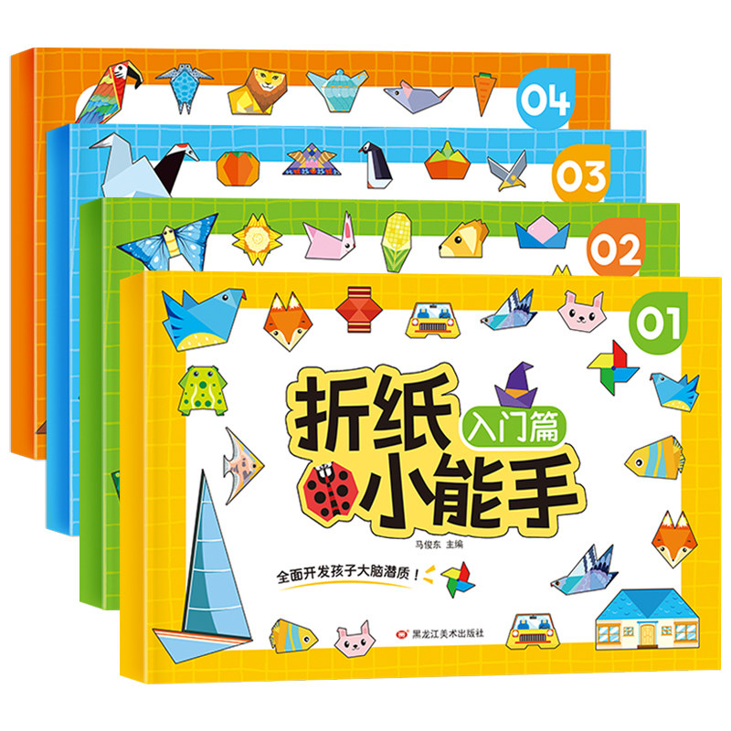 折纸小能手全4册儿童脑力开发3 6岁思维逻辑训练书儿童折纸diy创意手工作品制作3d立体纸宝宝亲子互动幼儿园趣味益智游戏剪纸书