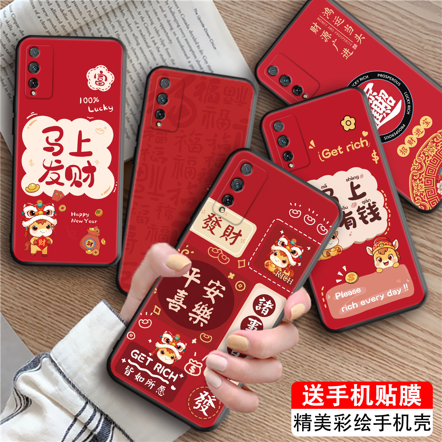 luckrider适用于华为荣耀play4Tpro手机壳荣耀play4tpro马年限定aqm AL10有钱主题play4tpro al10红色彩绘AQM