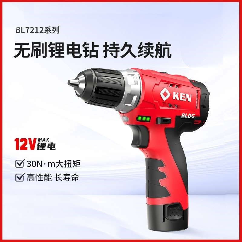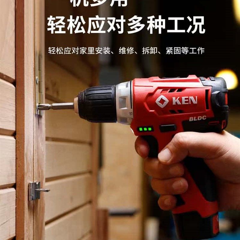 KEN 20充电小手枪工具 锐奇无刷锂电钻手持电动v螺丝刀家用BL7212