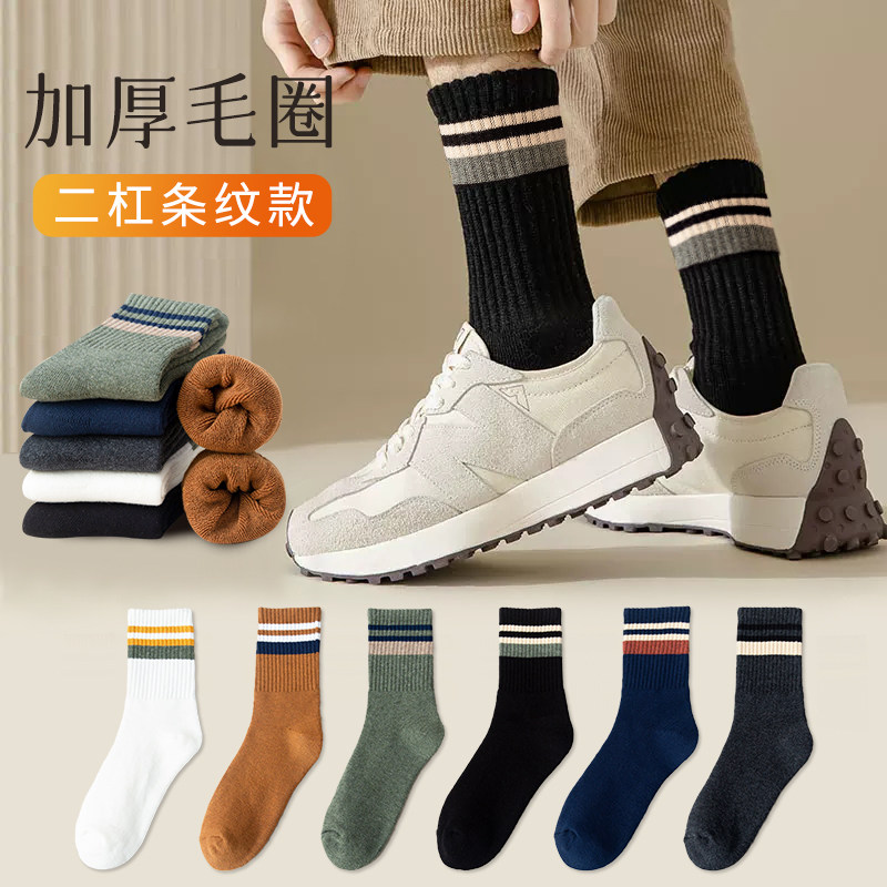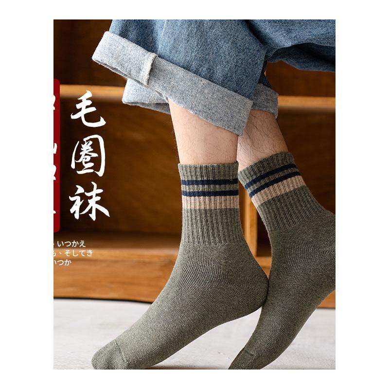 极速厚袜子男冬季 棉袜秋 中筒袜纯棉加绒加厚G保暖毛巾袜长筒男士