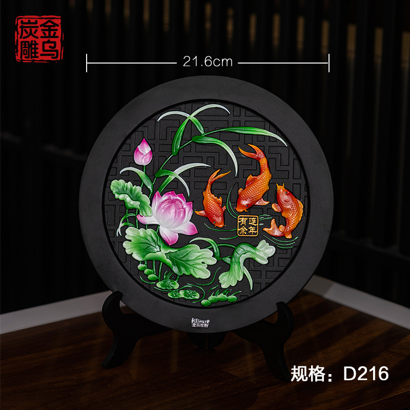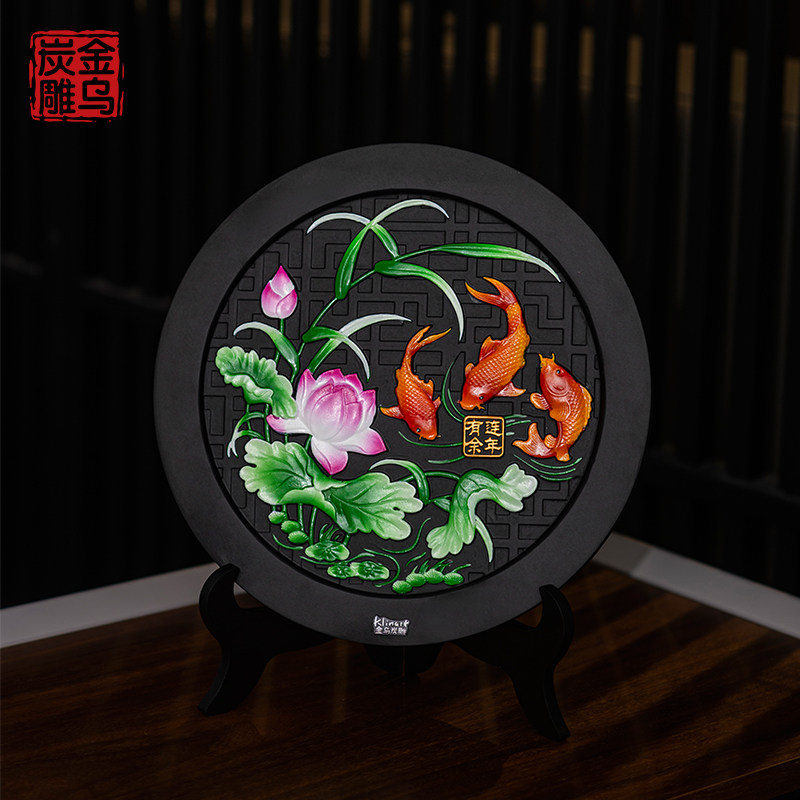 金乌炭雕连年有余客厅书房玄关家居室内装 饰品活性炭摆件乔迁礼品