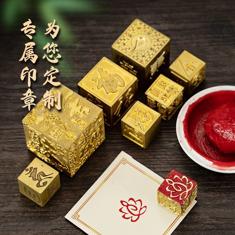 六面多面禅语图案古风实心黄铜闲章成品印章书画定制篆刻收藏摆件