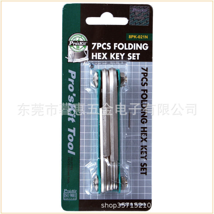 7支组 内六角扳手组套装 内六方螺丝刀 021N折叠型式 台湾宝工8PK