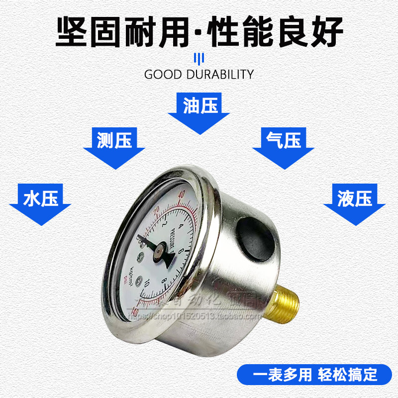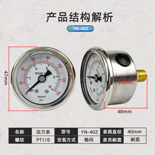 4油压液压表 YN40Z轴向耐震压力表不锈钢40mm表盘螺纹M10