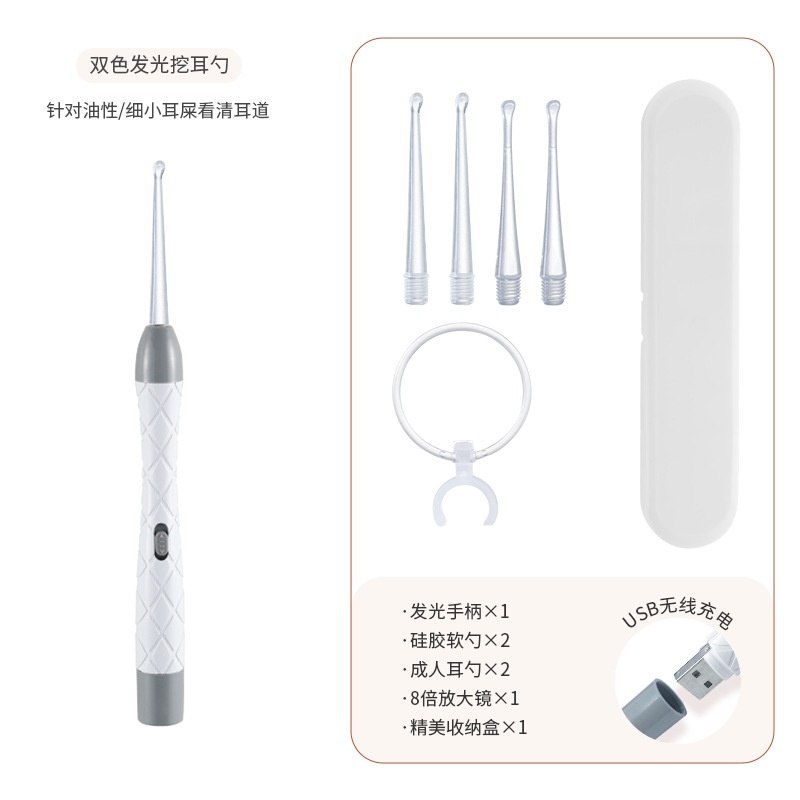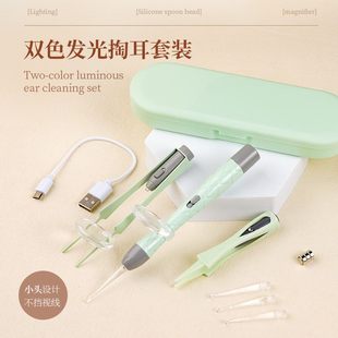 儿童发光耳勺套装 宝宝耳屎工具头耳掏耳朵挖安全充电专用镊子软采