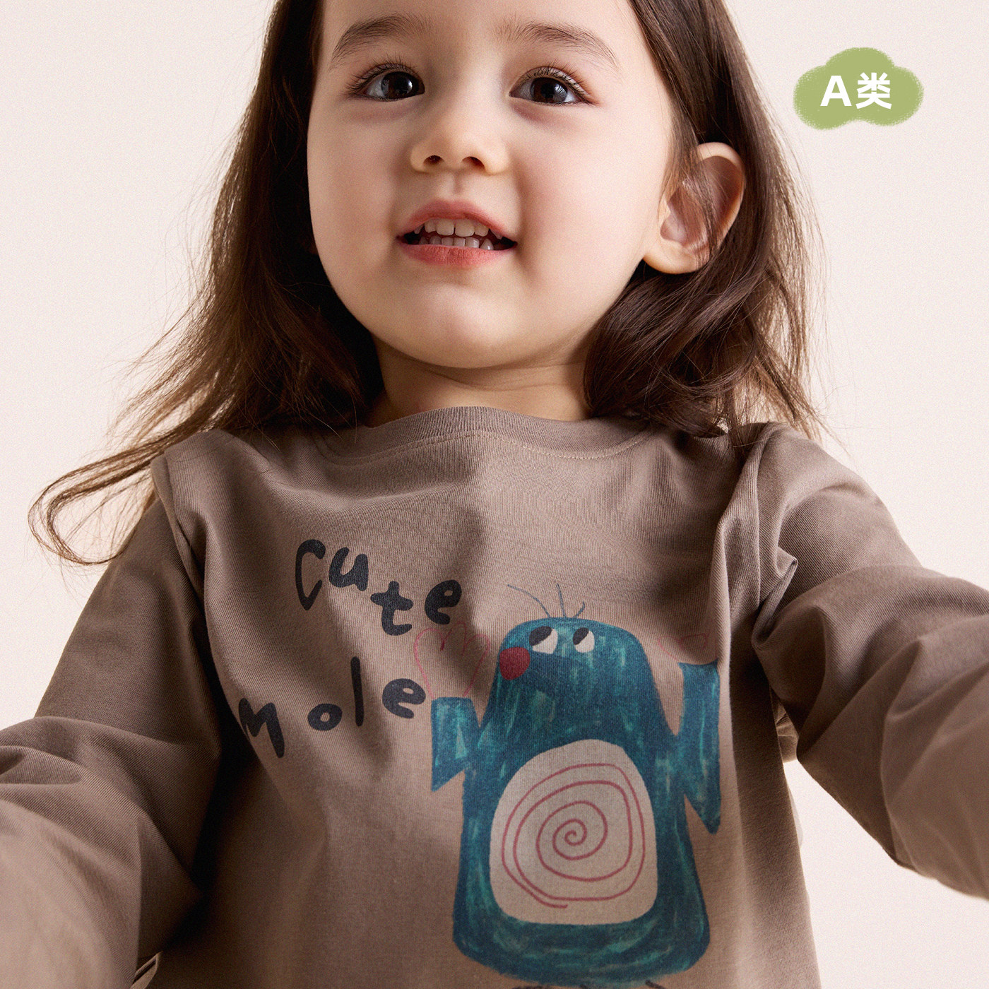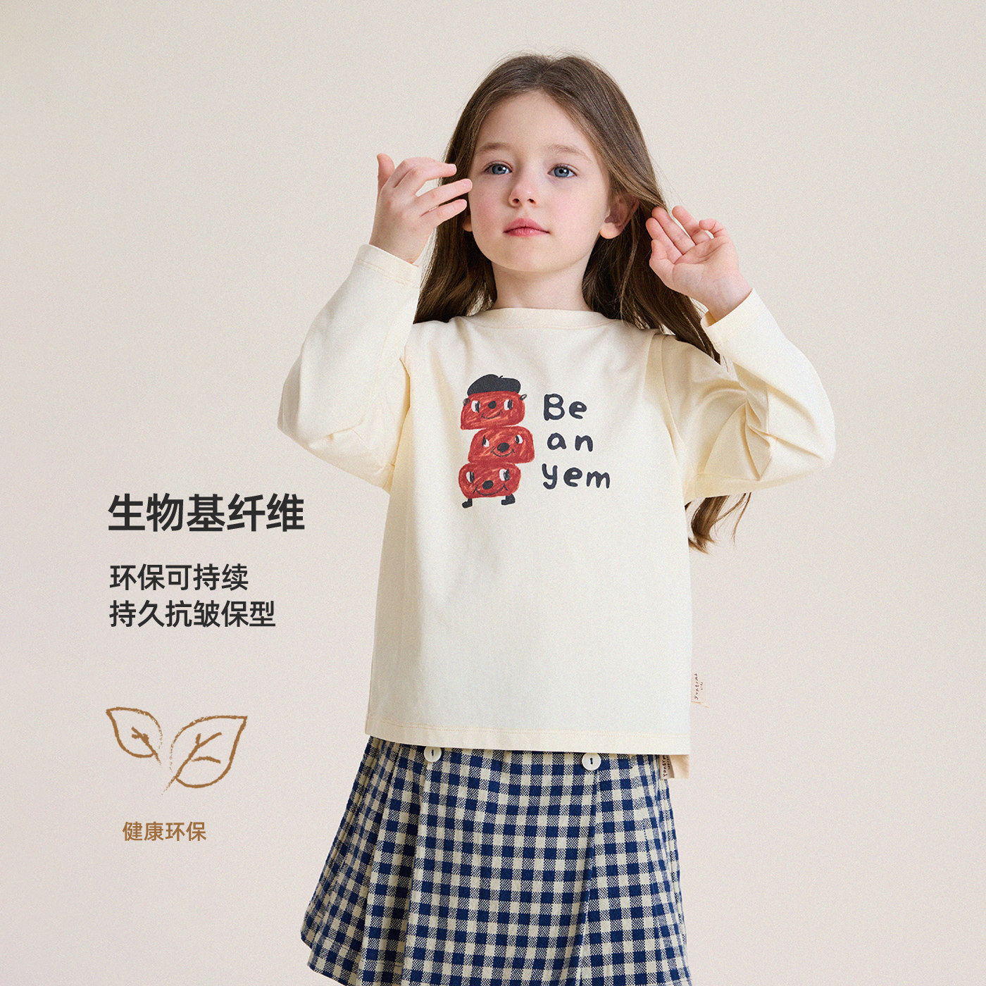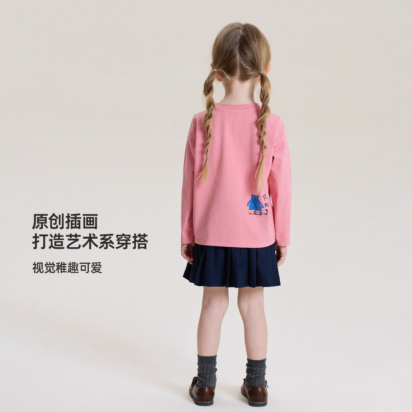 儿童时尚 宝宝春季 打底衫 允儿妈女童新款 T恤上衣 百搭字母卡通长袖