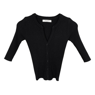 毛衣辣妹显瘦打底衫 上衣女早春短款 T恤 针织开衫 性感V领正肩五分袖