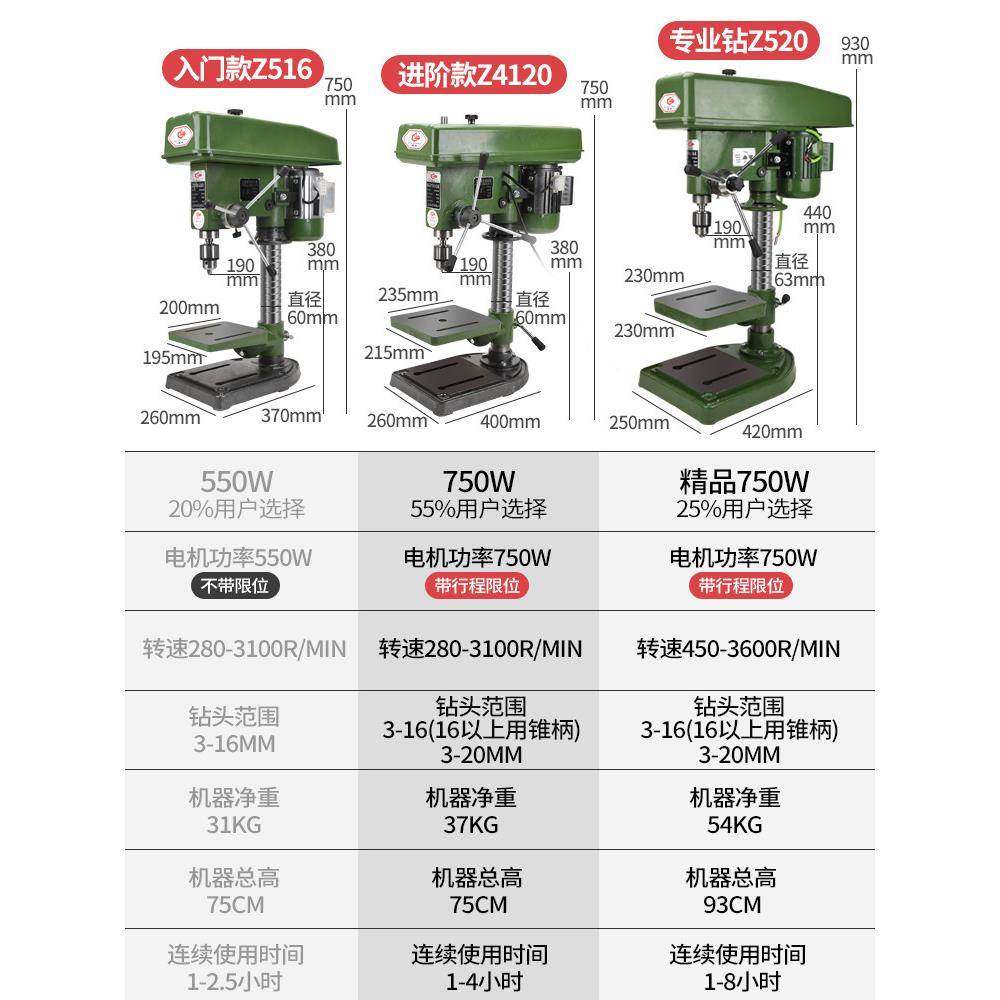 殊尚台钻16MM20MM不锈钢槽钢台式 钻床工业级大功率550W750W小铣床