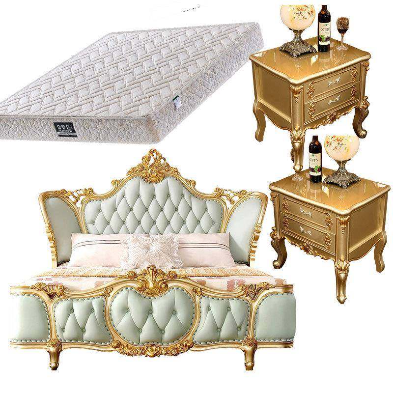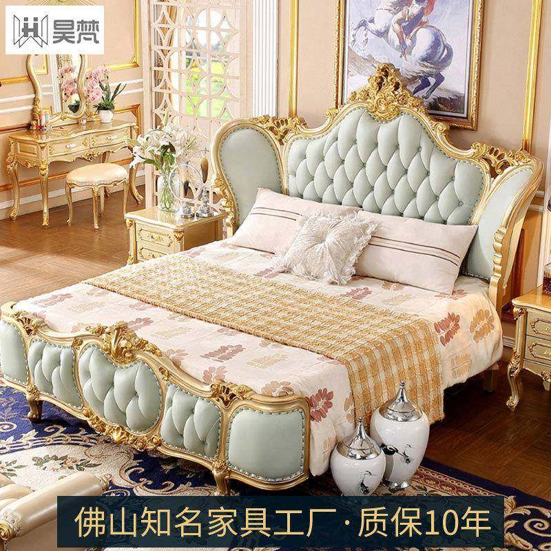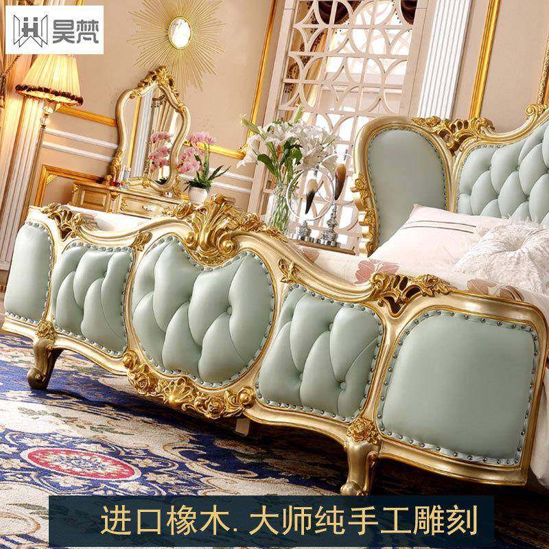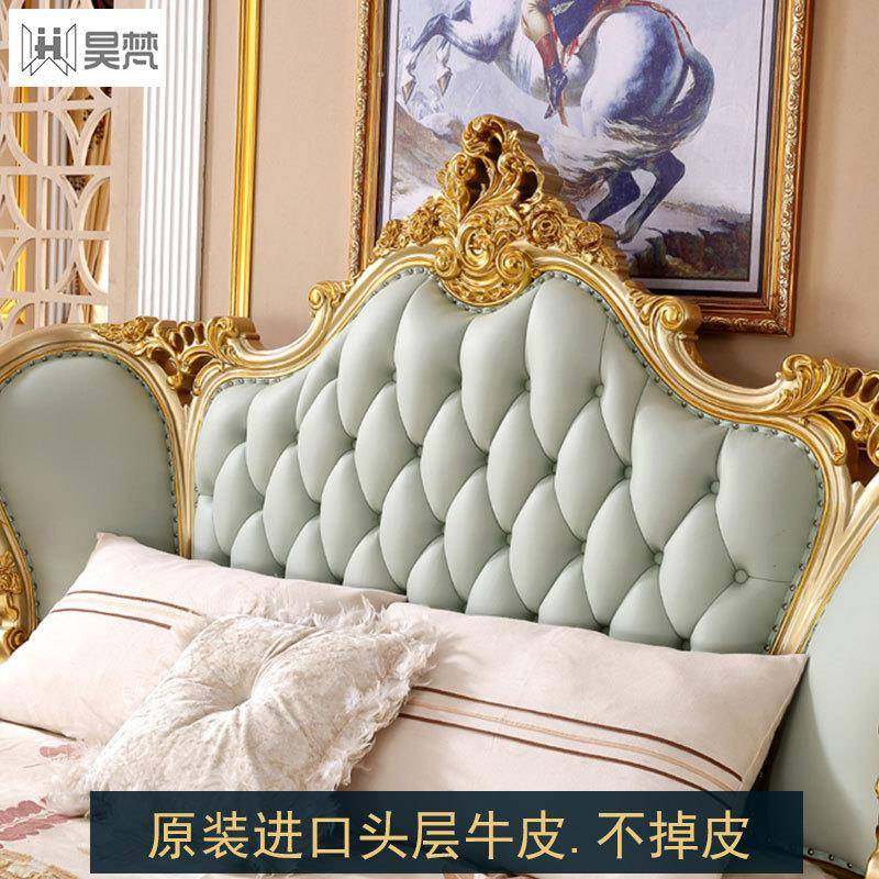 工厂欧式 公主2000x2200双人床大床雕花 豪华实木真皮主卧法式