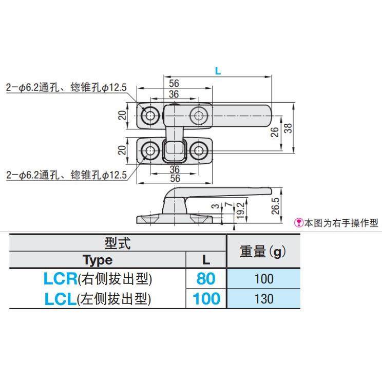 LCR80 FHS31 L100旋转扣不锈钢把手LCL L80 100把手锁 FHS41