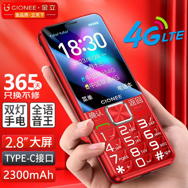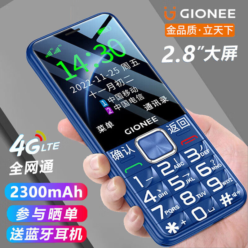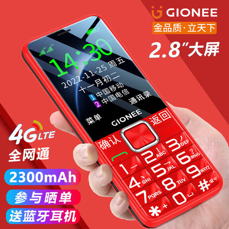 金立老年手机4G全网通老年机超长待机老人手机2.8英寸大屏大字体大声音学生老年人专用手机