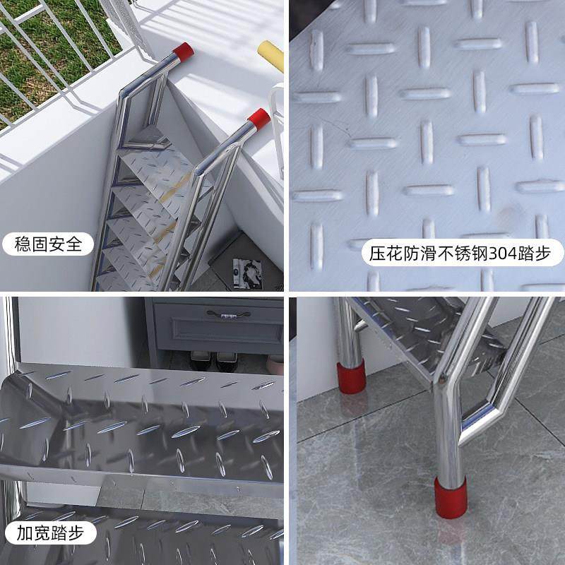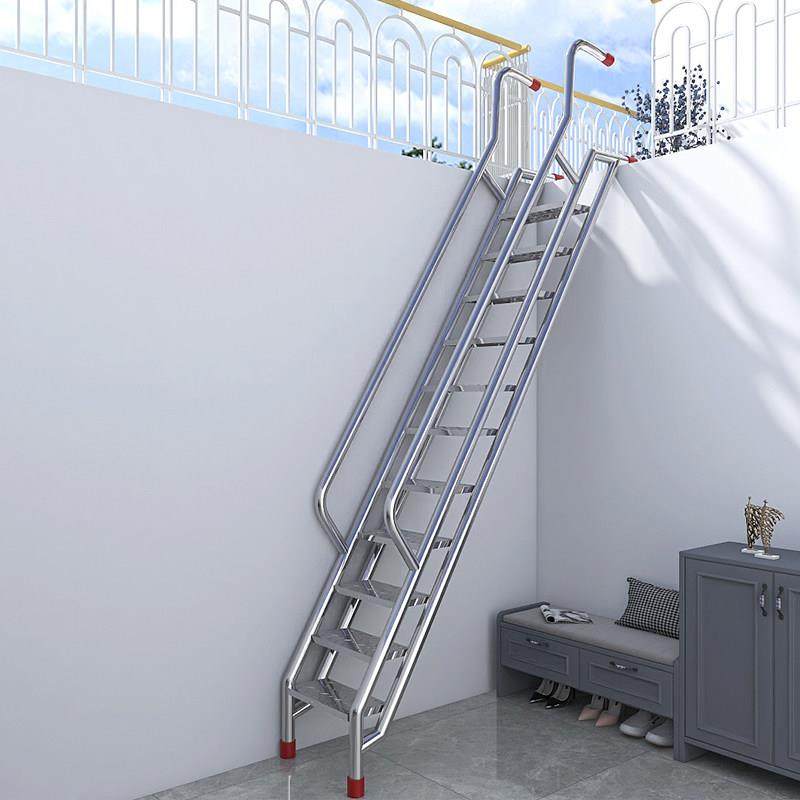 家用户外304 不锈钢爬梯加厚防滑踏步不锈钢扶手梯工业直梯定制梯