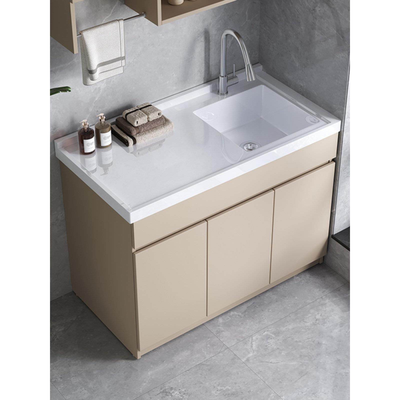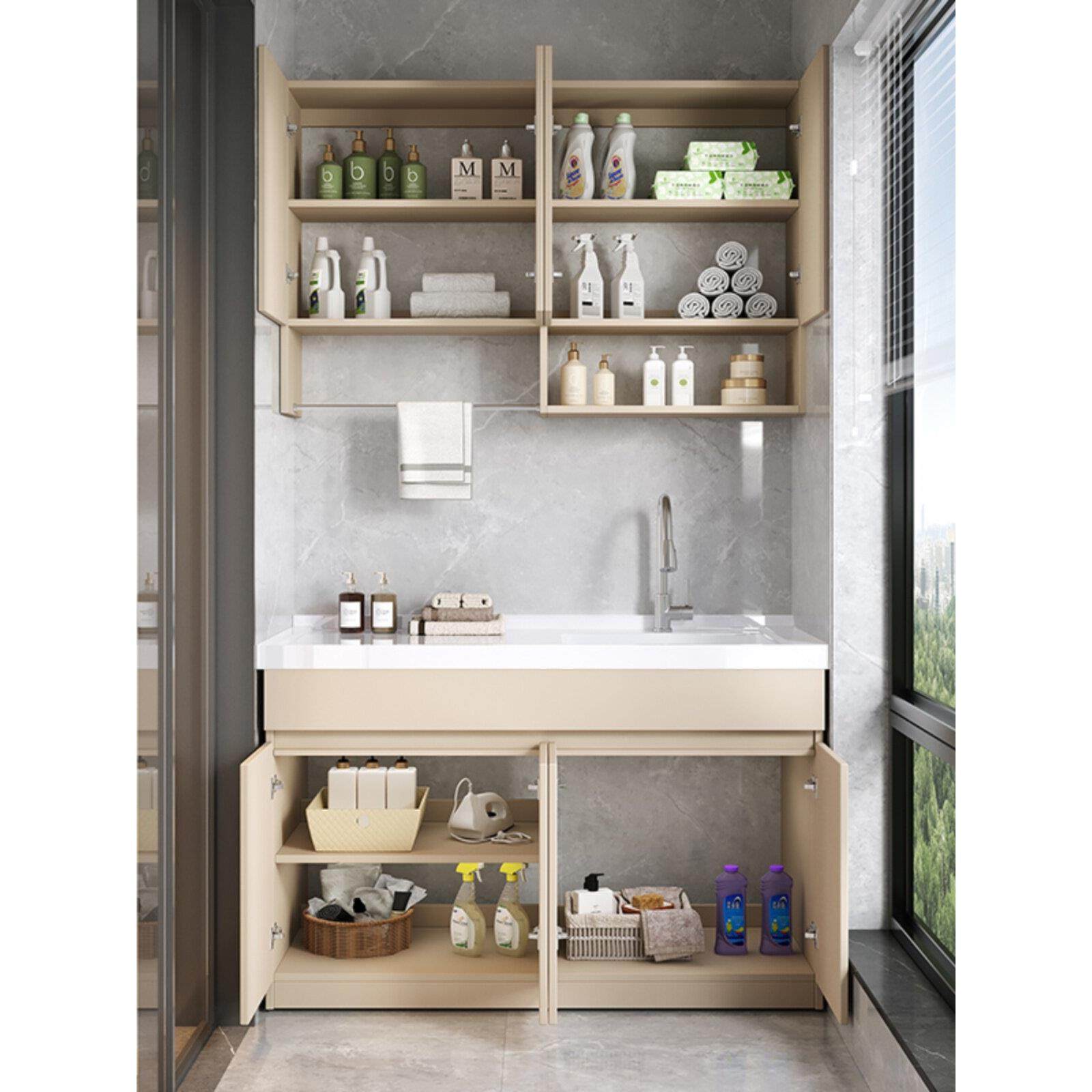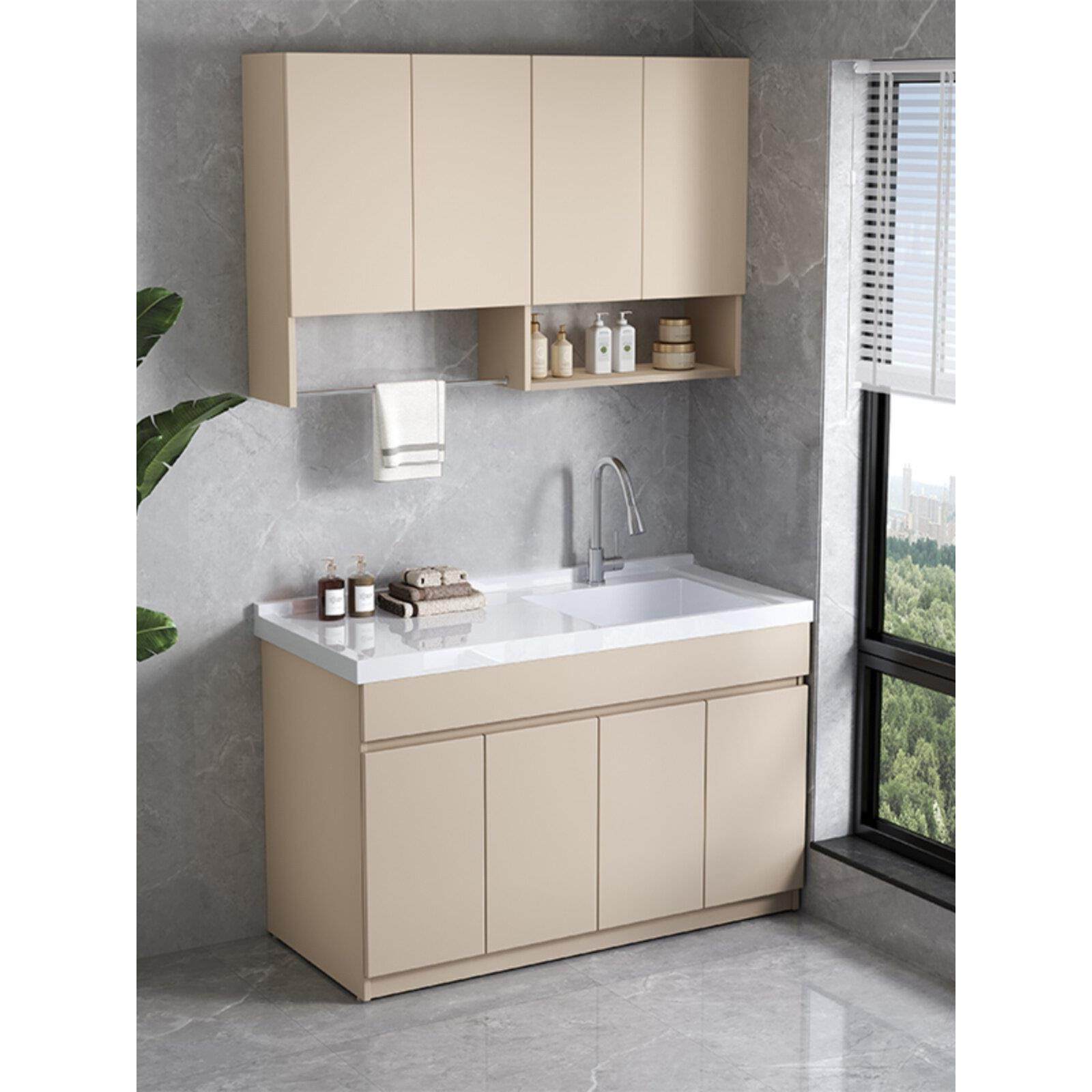 蜂窝铝阳台落地柜洗衣池脸盆一体式 洗手盆石英石台面组合定制伴侣