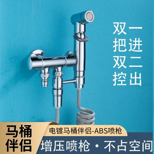 红冲马桶喷枪套装 妇洗器小花洒马桶伴侣龙头卫生间双用角阀 增压