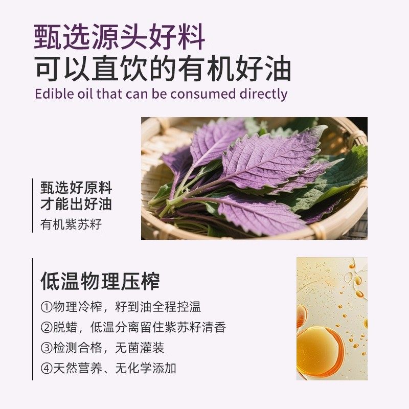 央妈推荐 有机紫苏籽油官方旗舰店纯苏子油低温冷榨食用油孕妇可吃