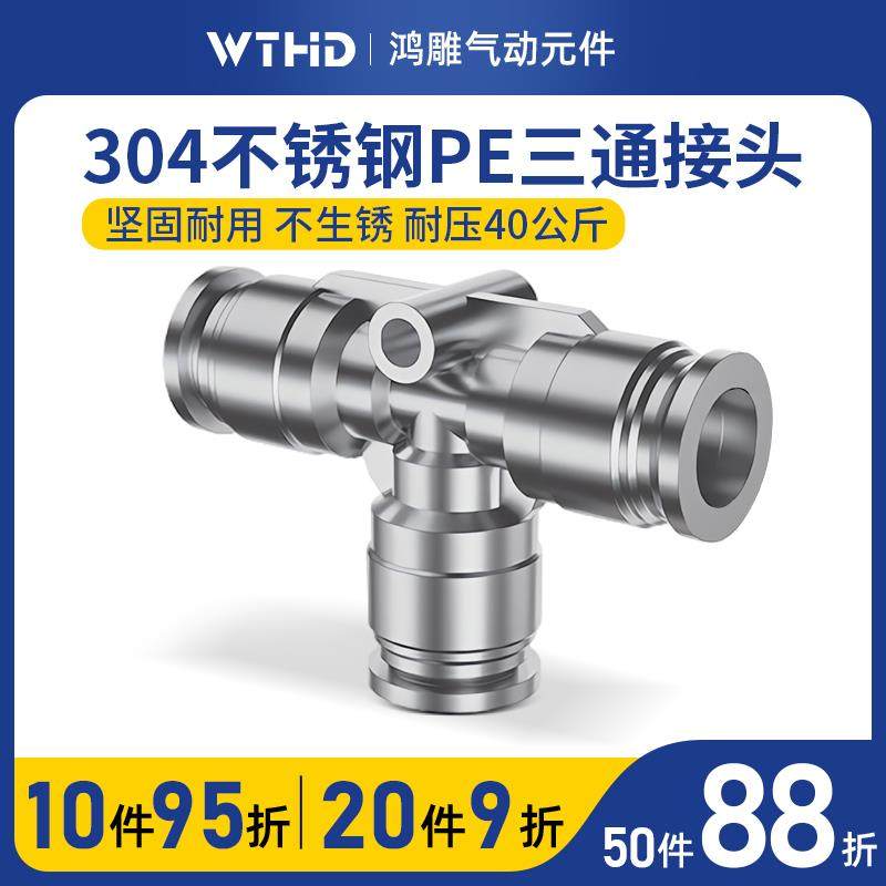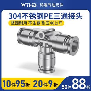 12mm 304不锈钢气管快速接头PE三通PEG变径三通耐高压高温6