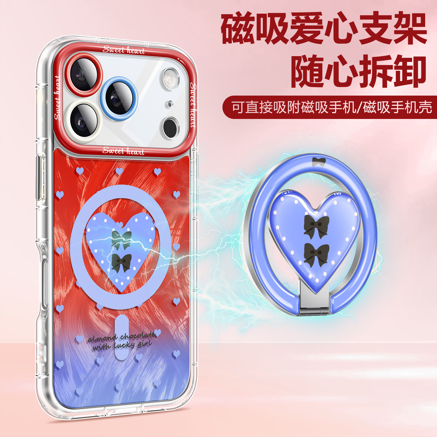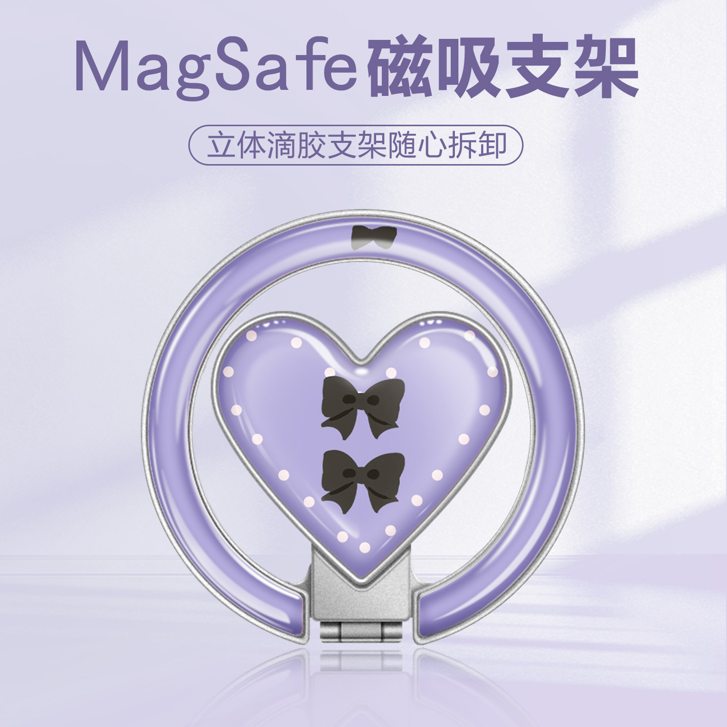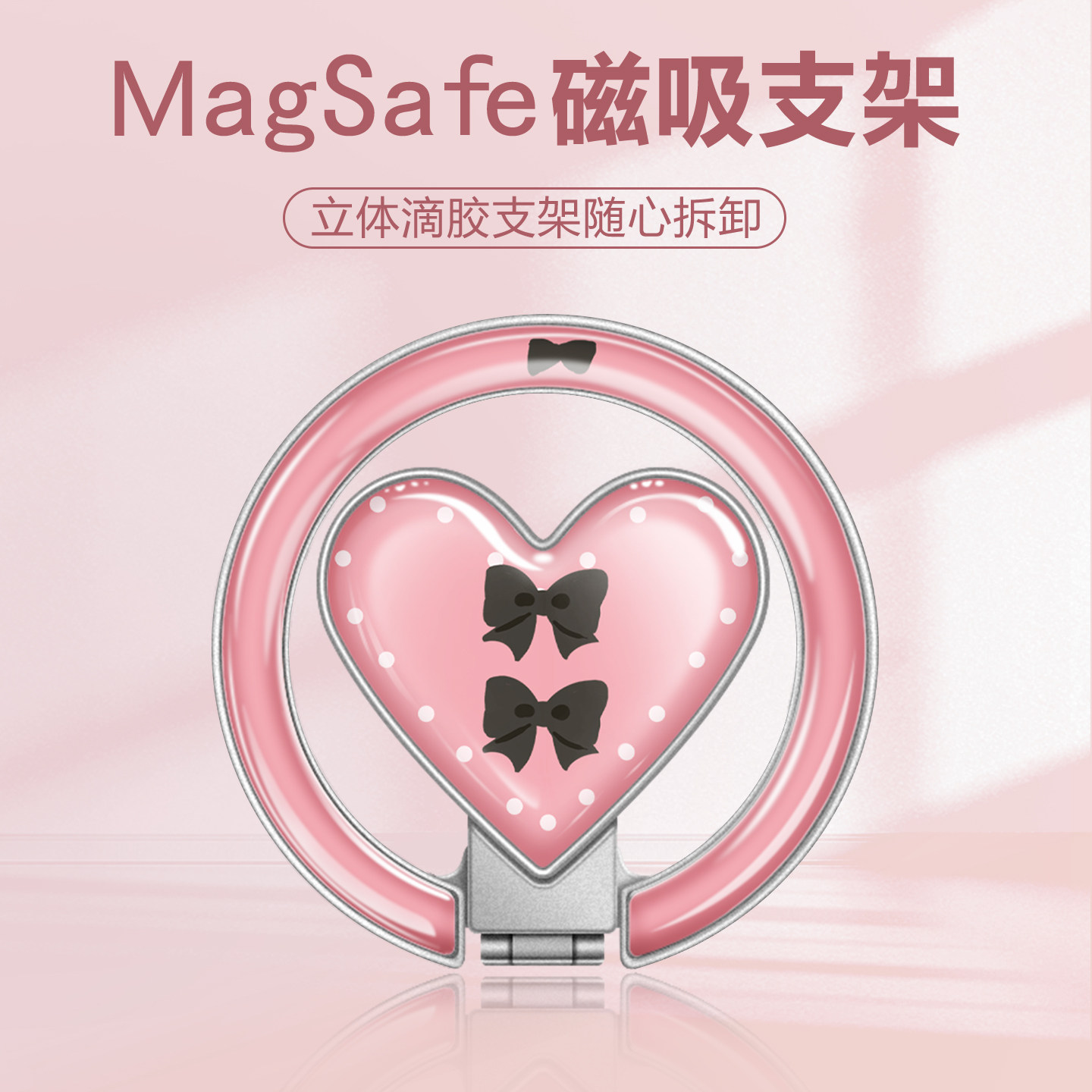 磁吸支架ins风爱心360旋转可折叠便携式 懒人桌面支架横竖支撑追剧必备适用苹果手机壳magsafe强力吸附指环扣