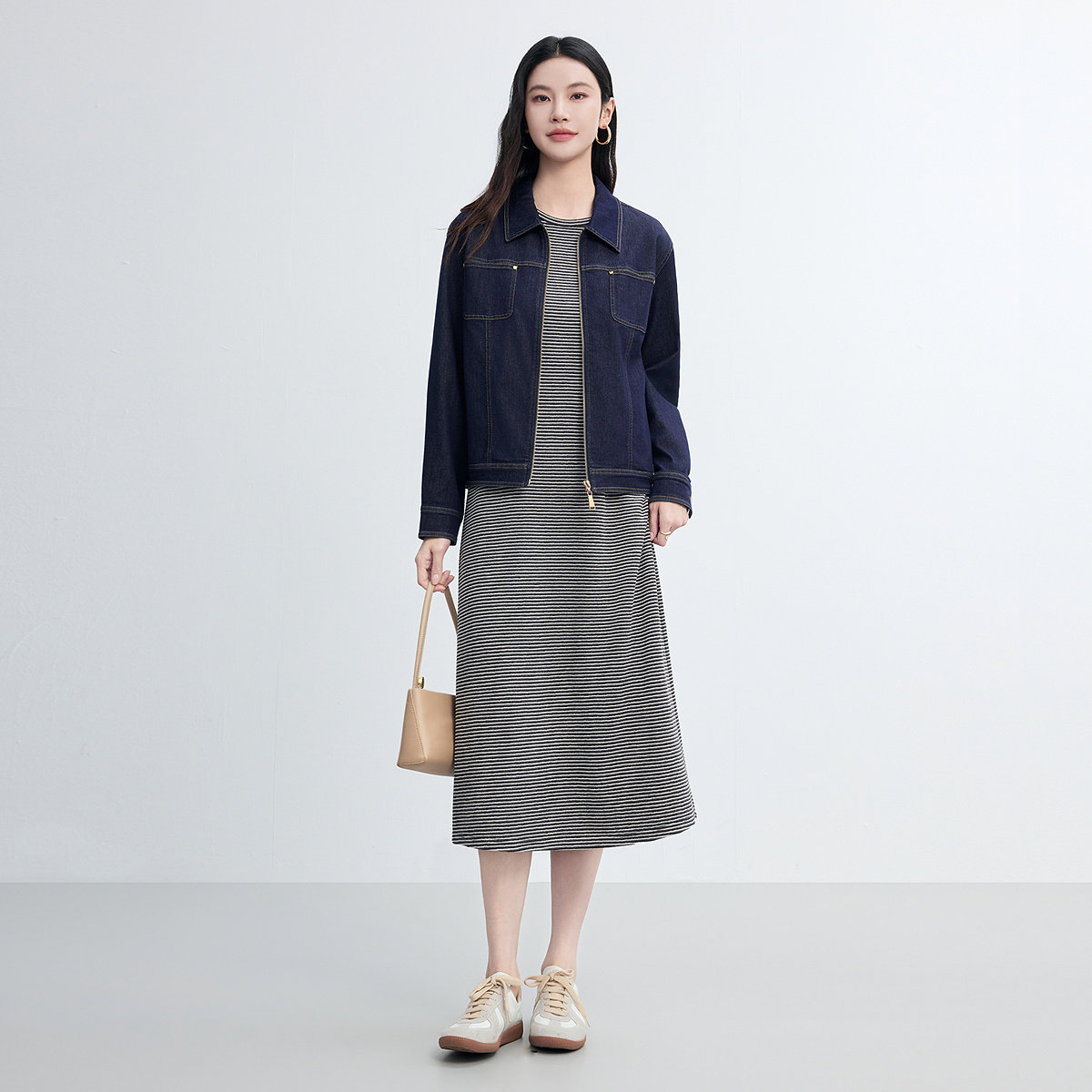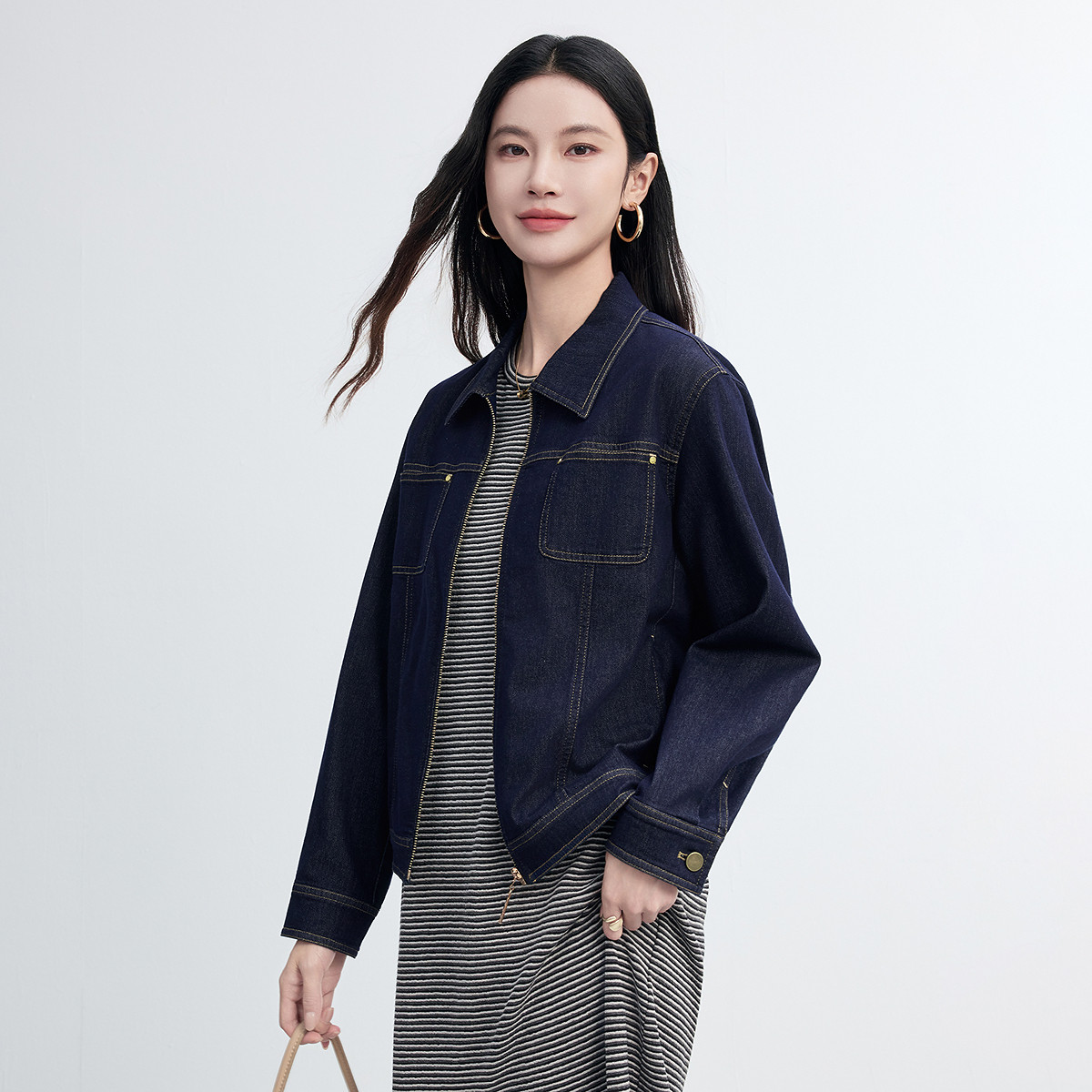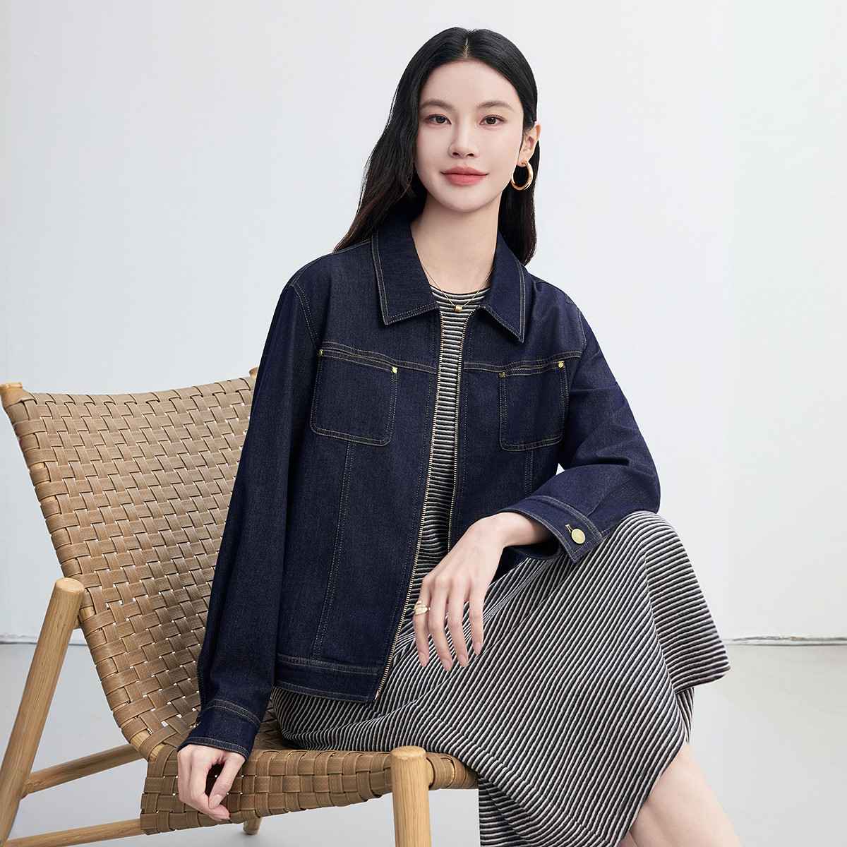 休闲外套上衣女装 FINITY菲妮迪牛仔短外套2026春新款 简约翻领短款