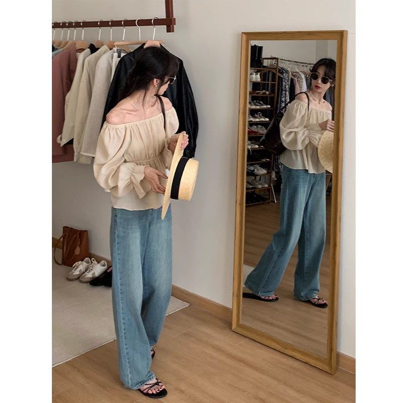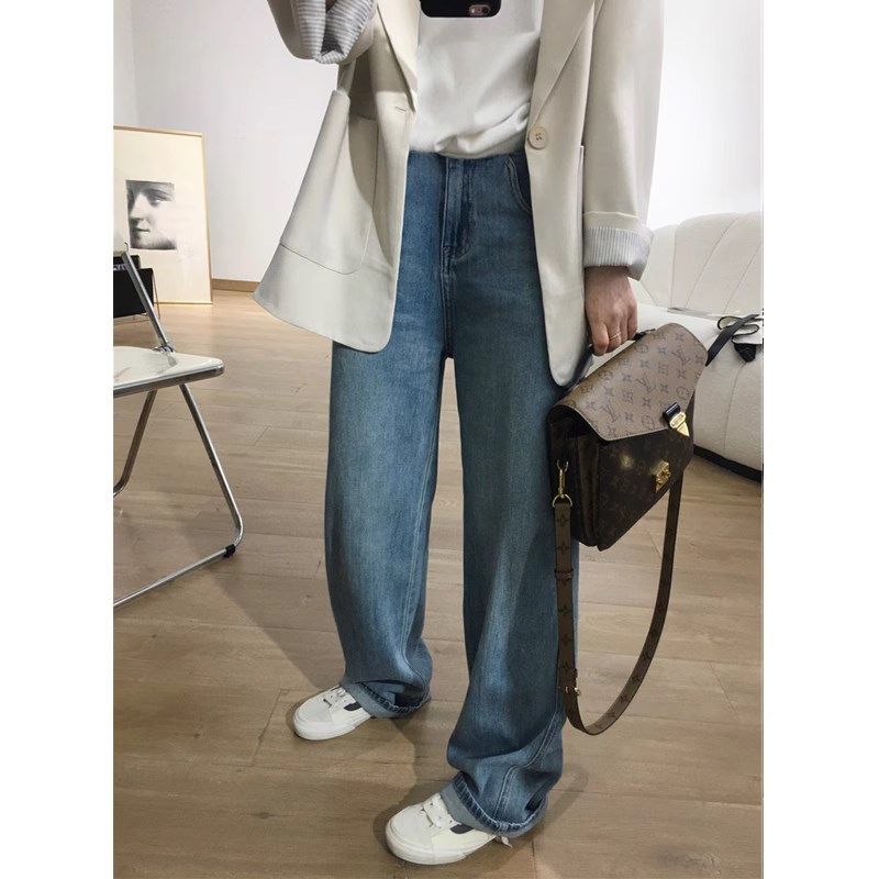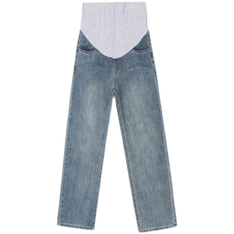 秋冬加绒复古蓝百搭阔腿直筒裤 孕妇拖地牛仔裤 春秋外穿宽松休闲裤