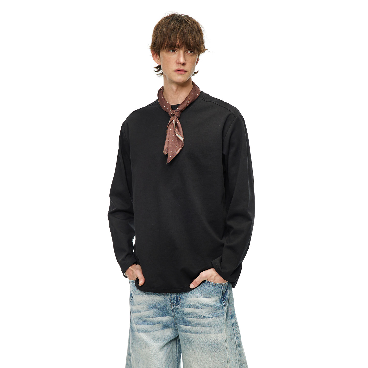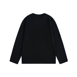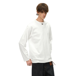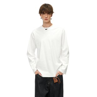 美式 男春季 宽松圆领内搭上衣 T恤衫 男道简约240G重磅纯色打底长袖