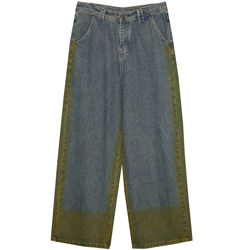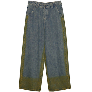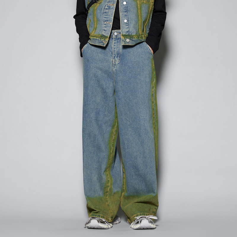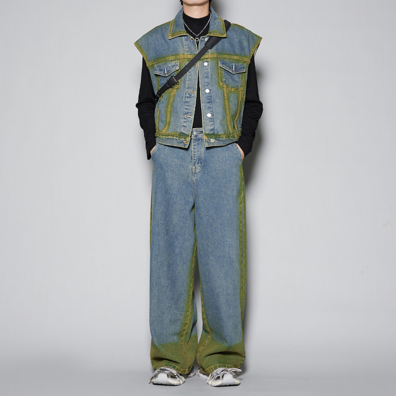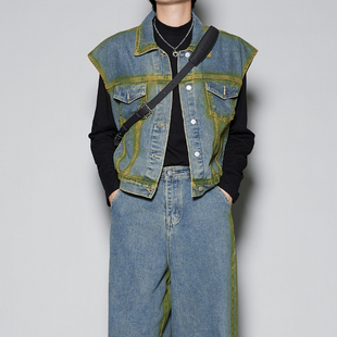 套装 时尚 外搭背心阔腿牛仔裤 复古水洗渐层无袖 喷漆设计感外 街拍款
