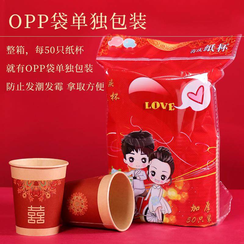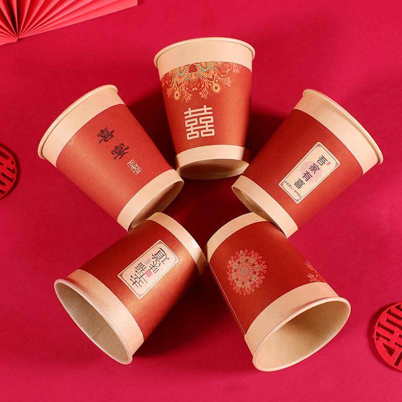 加厚不烫手家用结婚纸杯婚礼用品纸杯子婚宴一次性纸杯整箱装