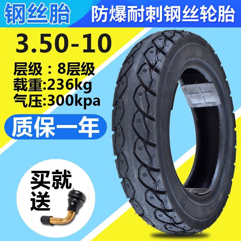 钉克踏板车3.50 10防滑钢丝胎 10真空胎14x3.5电动摩托车轮胎350