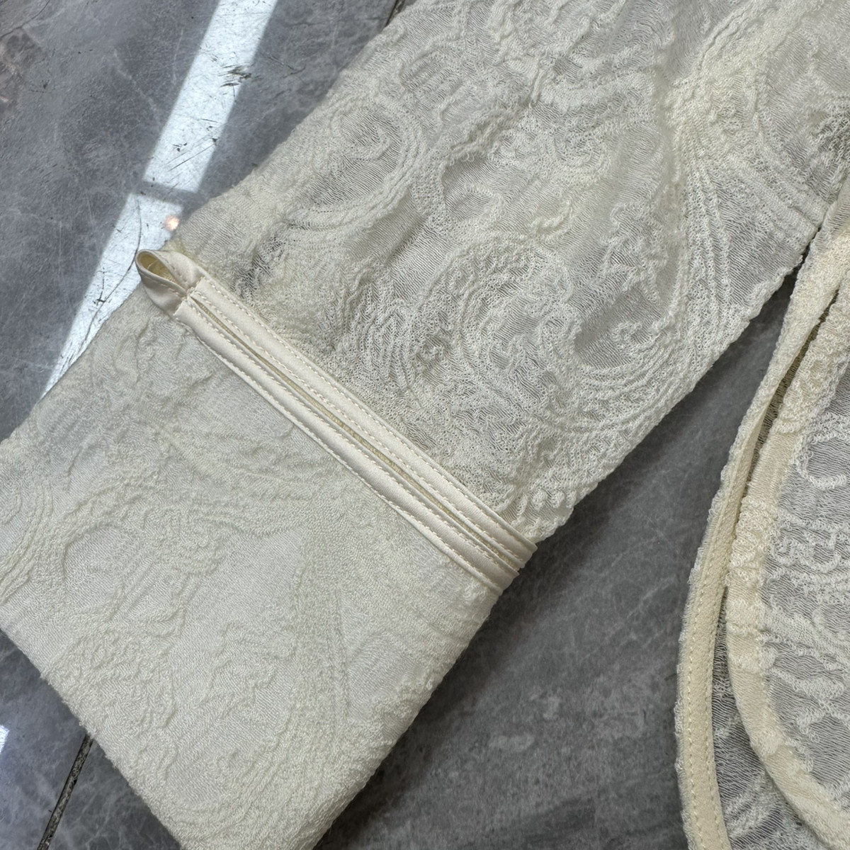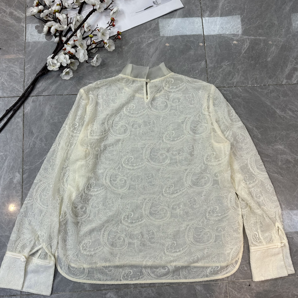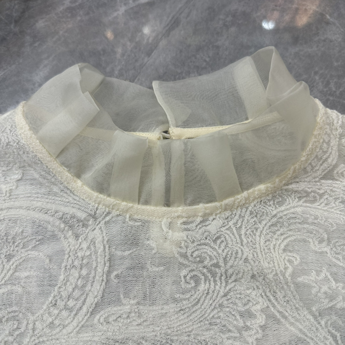 YS10 LC感复古提花腰果花压折半高领蕾丝小衫 含40羊毛