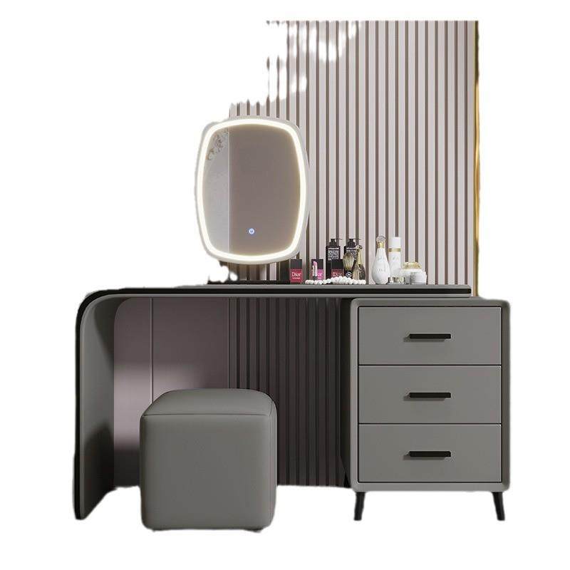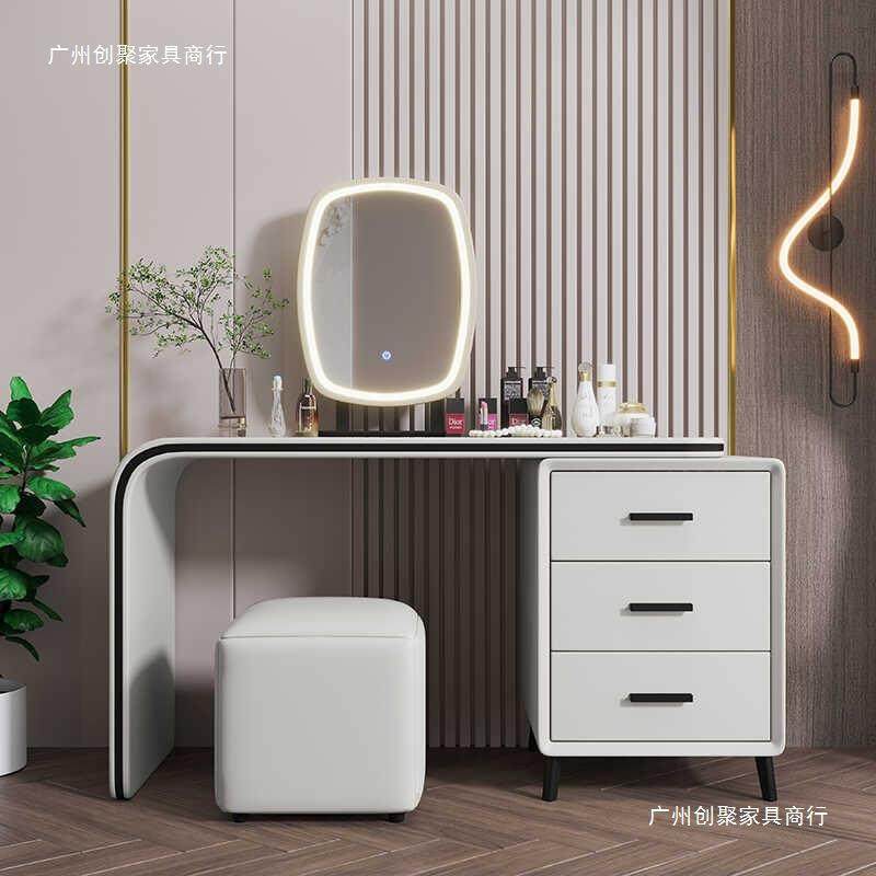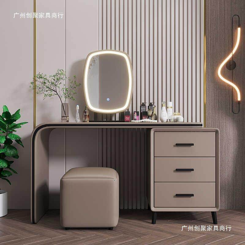 意式 轻奢妆木台LEG简约现代皮质软实体白梳色奶油风梳妆台带灯化