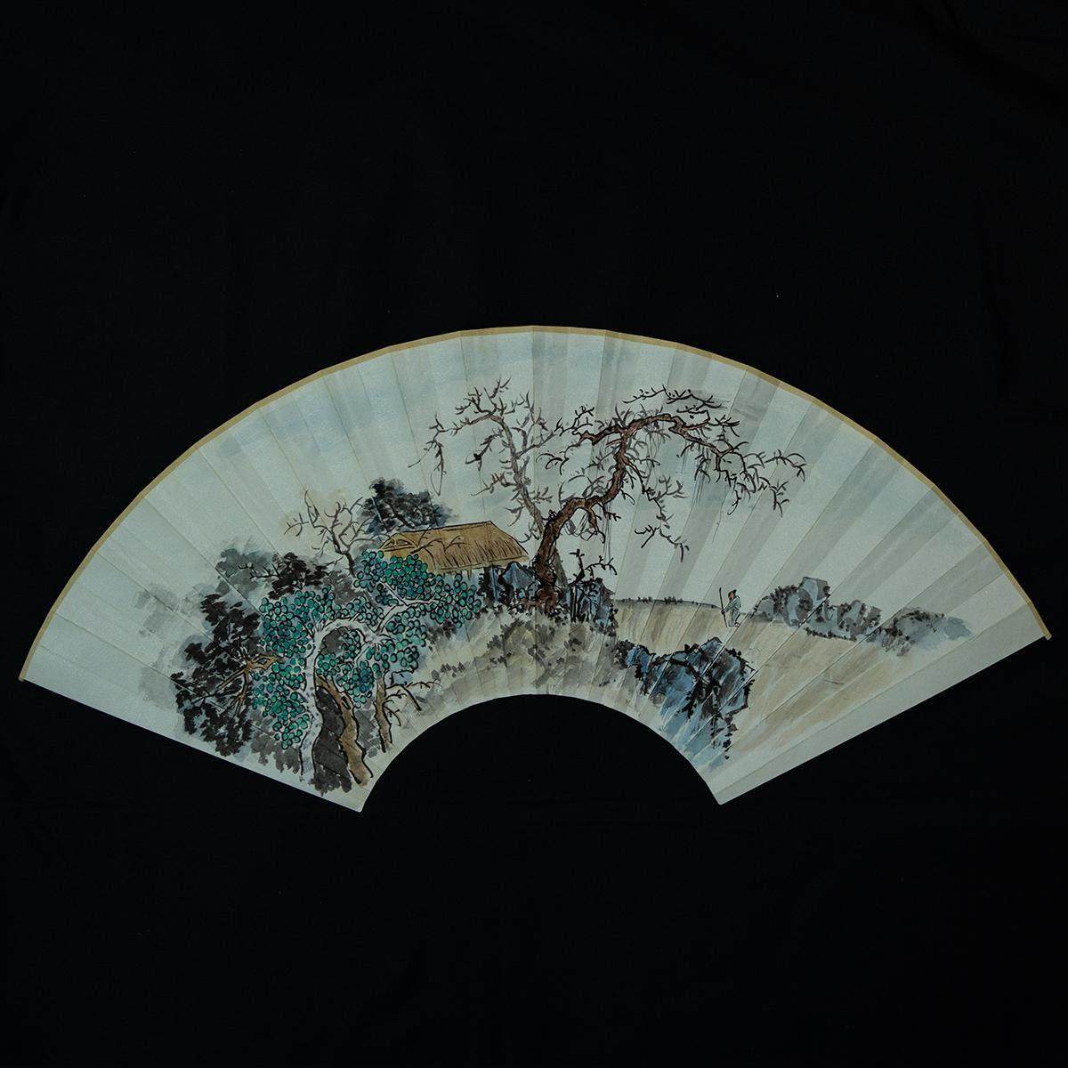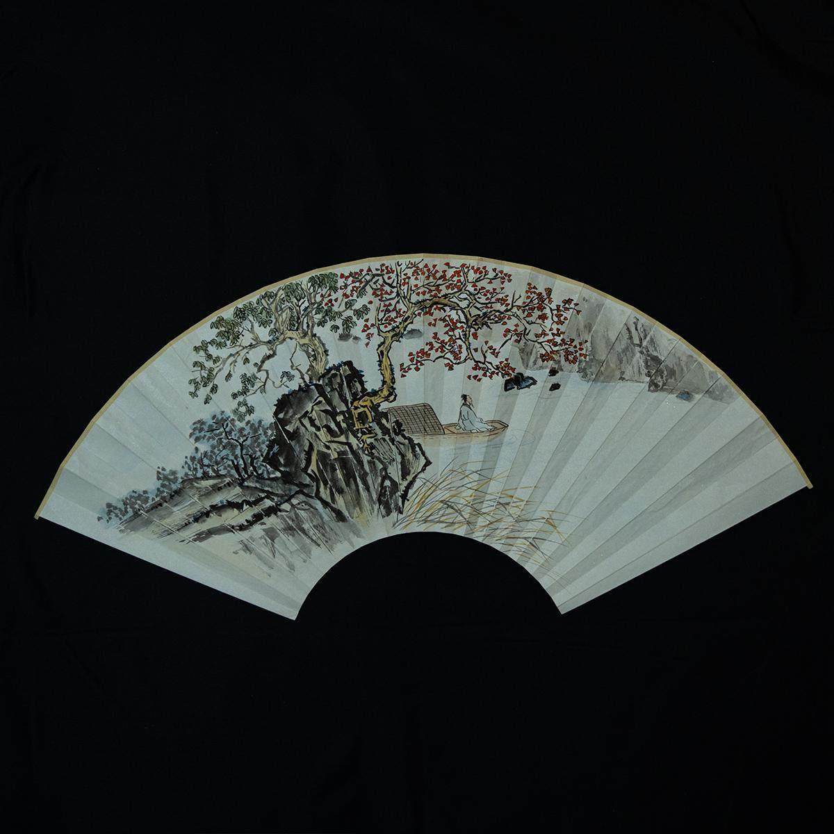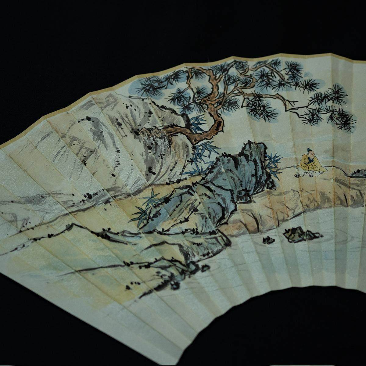 中国风黑色水墨画旗袍扇子随身夏天古风中式 流苏折扇便携汉服竹扇
