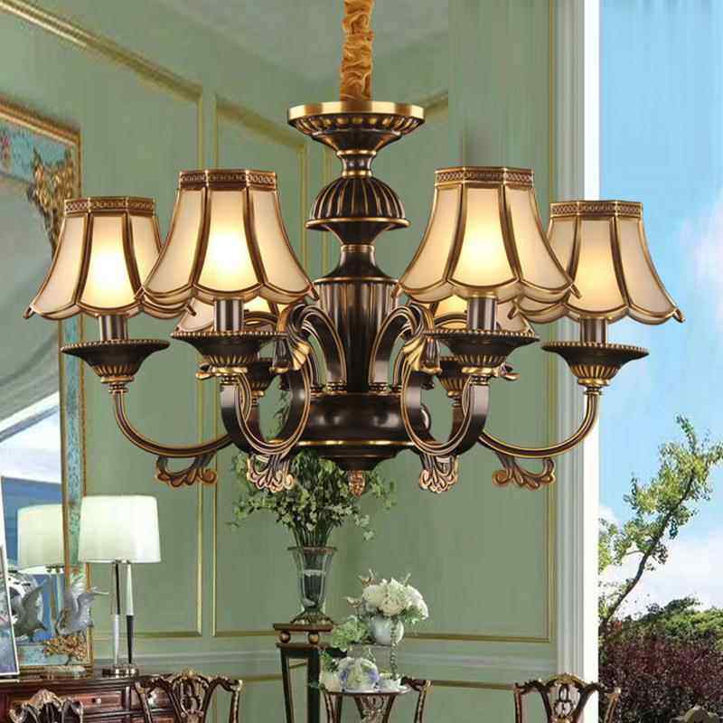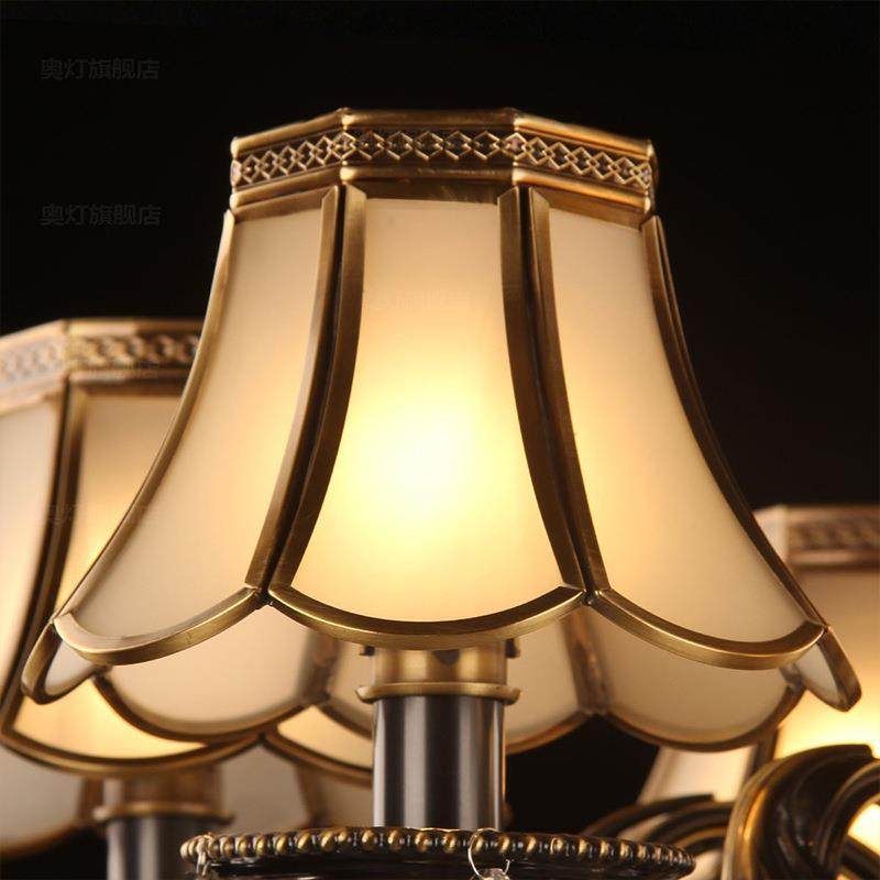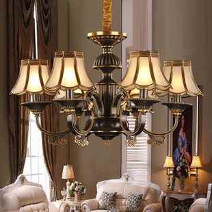轻奢欧式 铜质6头铜艺擦灯 黑厅色金EHY室全铜吊灯客厅餐卧书房美式