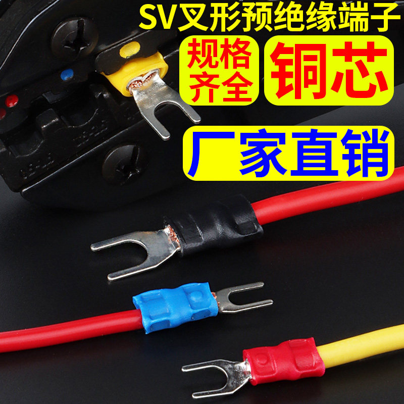 接线端子SV1. 叉型绝缘电线接头RV铜鼻子冷压U形开口线耳 3欧式