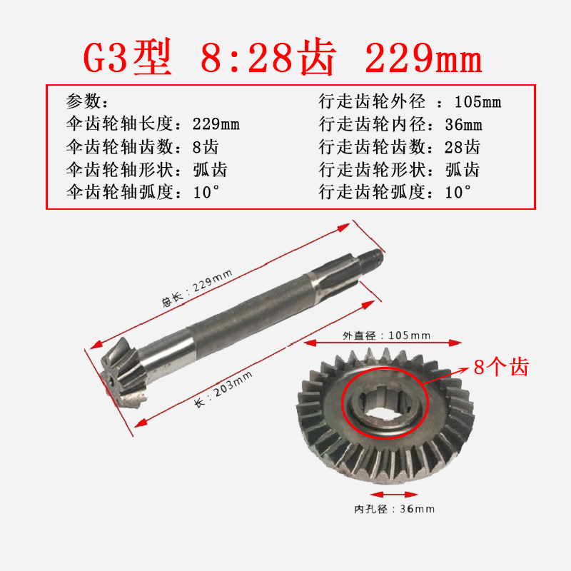 微耕机配件行走箱配件170F178F186F188F行走伞齿轮 从动伞齿轮轴
