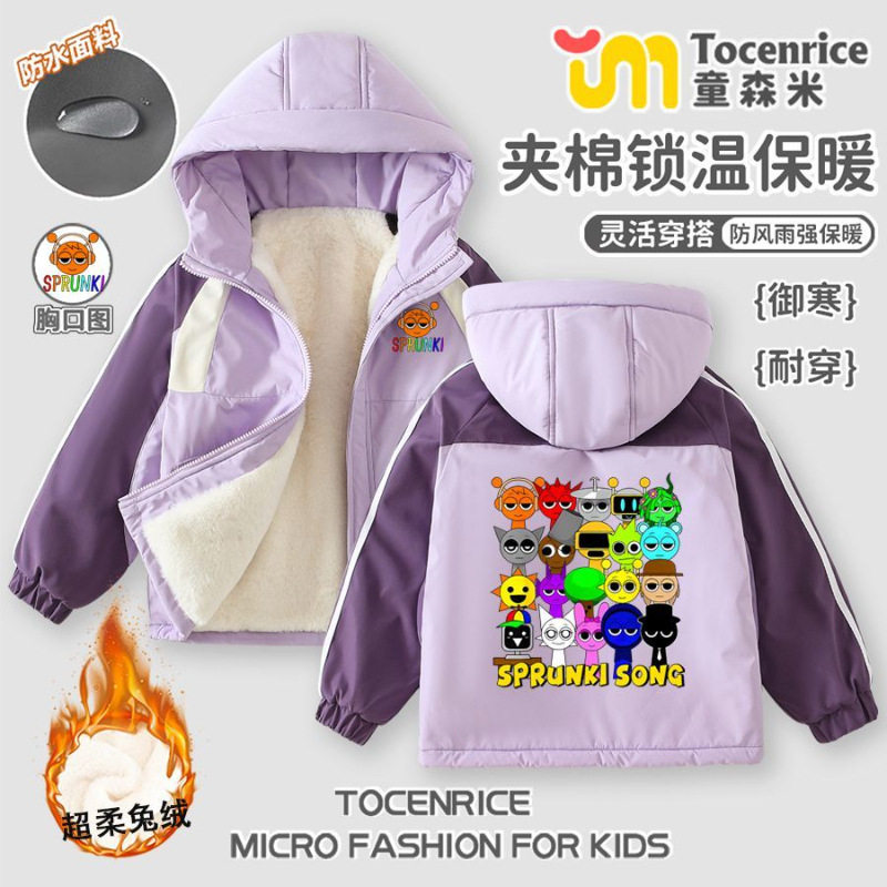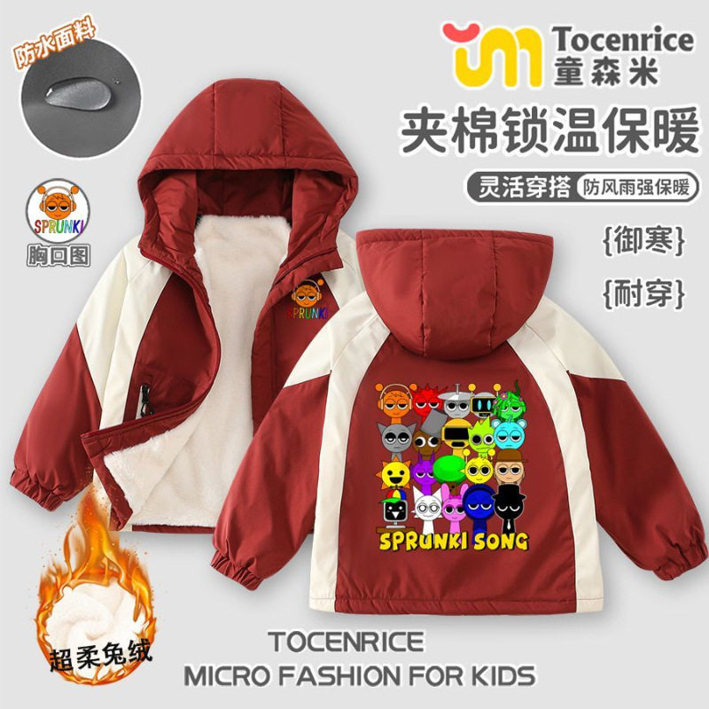 节奏盒子儿童冲锋衣防风防水透气男女童户外加厚加绒冬季 外套风衣