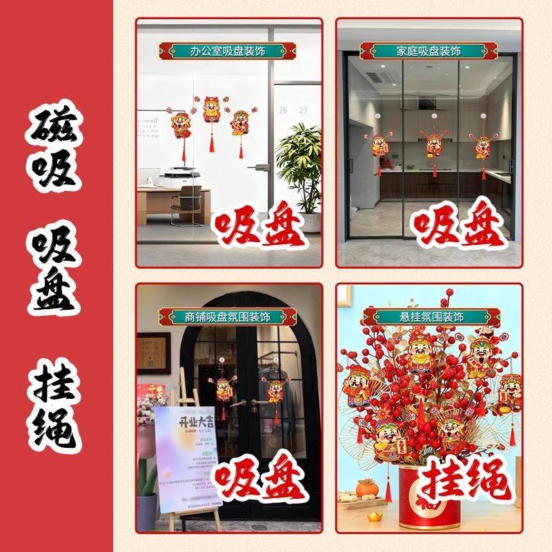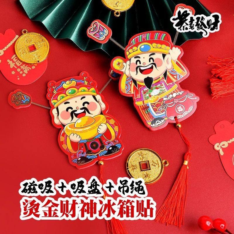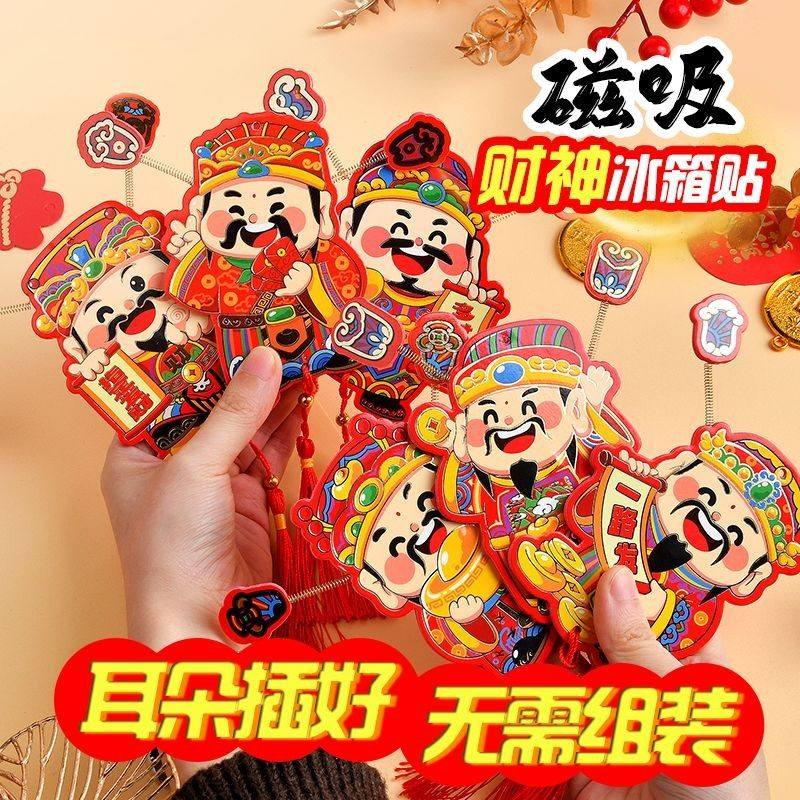 卡通可旋转冰箱贴磁吸贴摇头财神爷新年纳福创意春节喜庆装 饰门贴