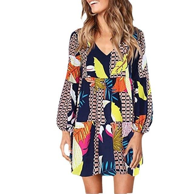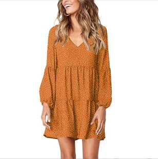 Neck dress Dress dot Polka loose Sleeve Long Tunic Women