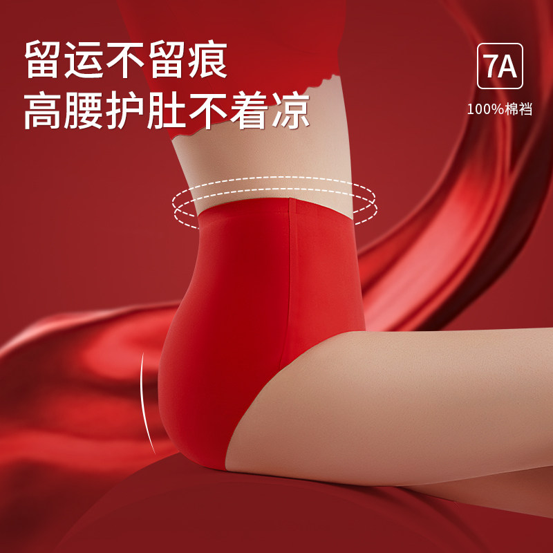 红豆女高腰内裤 礼盒 红色本命年纯棉抗菌裆收腹结婚袜子收腹三角裤